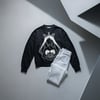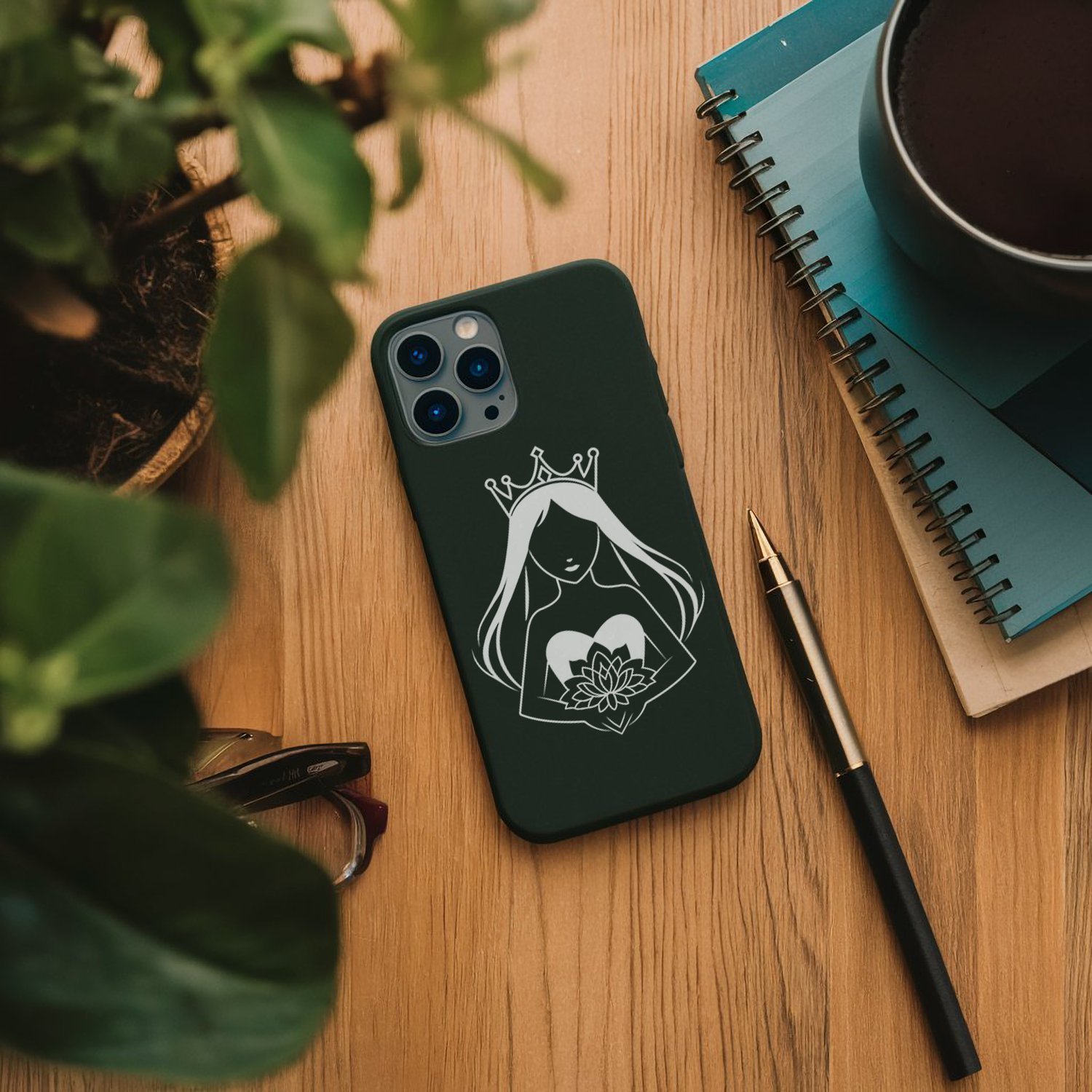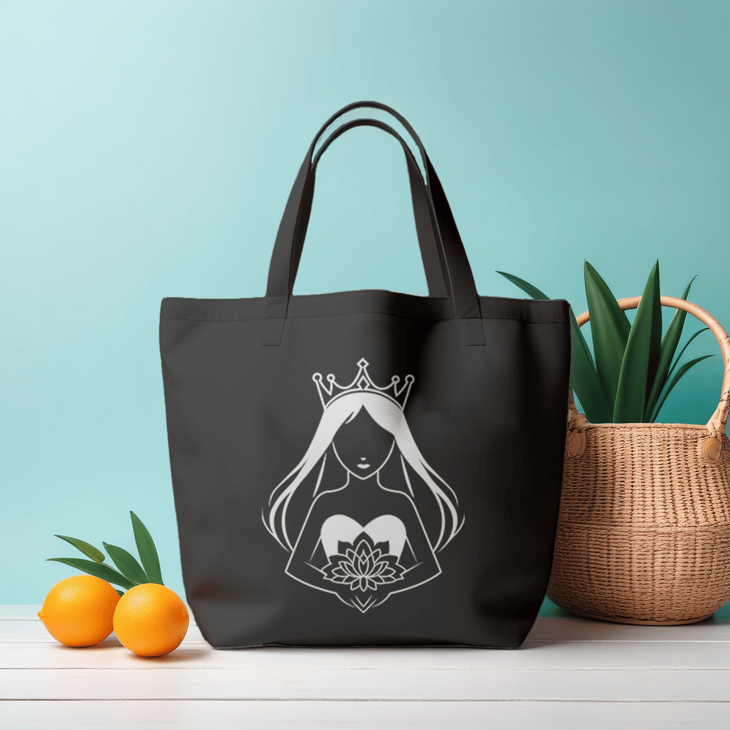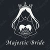 A scalable vector illustration of a majestic Bride's silhouette in white, holding a bouquet of flowers, set against a black background. Perfect for elegant and wedding-themed designs.