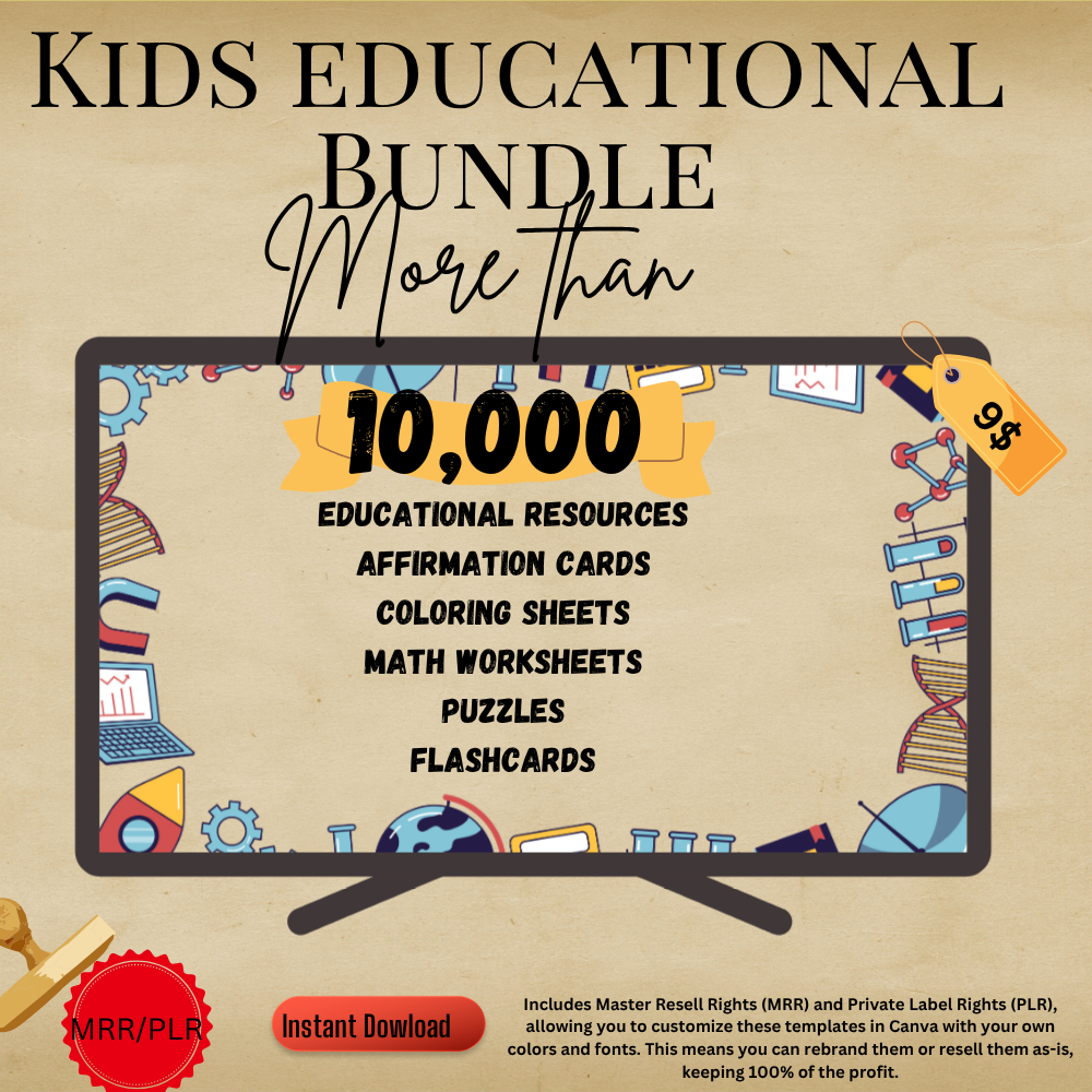 Unlock a treasure trove of over 10,000 quality educational resources designed for educators, parents, and small business owners! This meticulously crafted bundle is perfect for anyone seeking engaging materials for kids or looking to resell educational content.