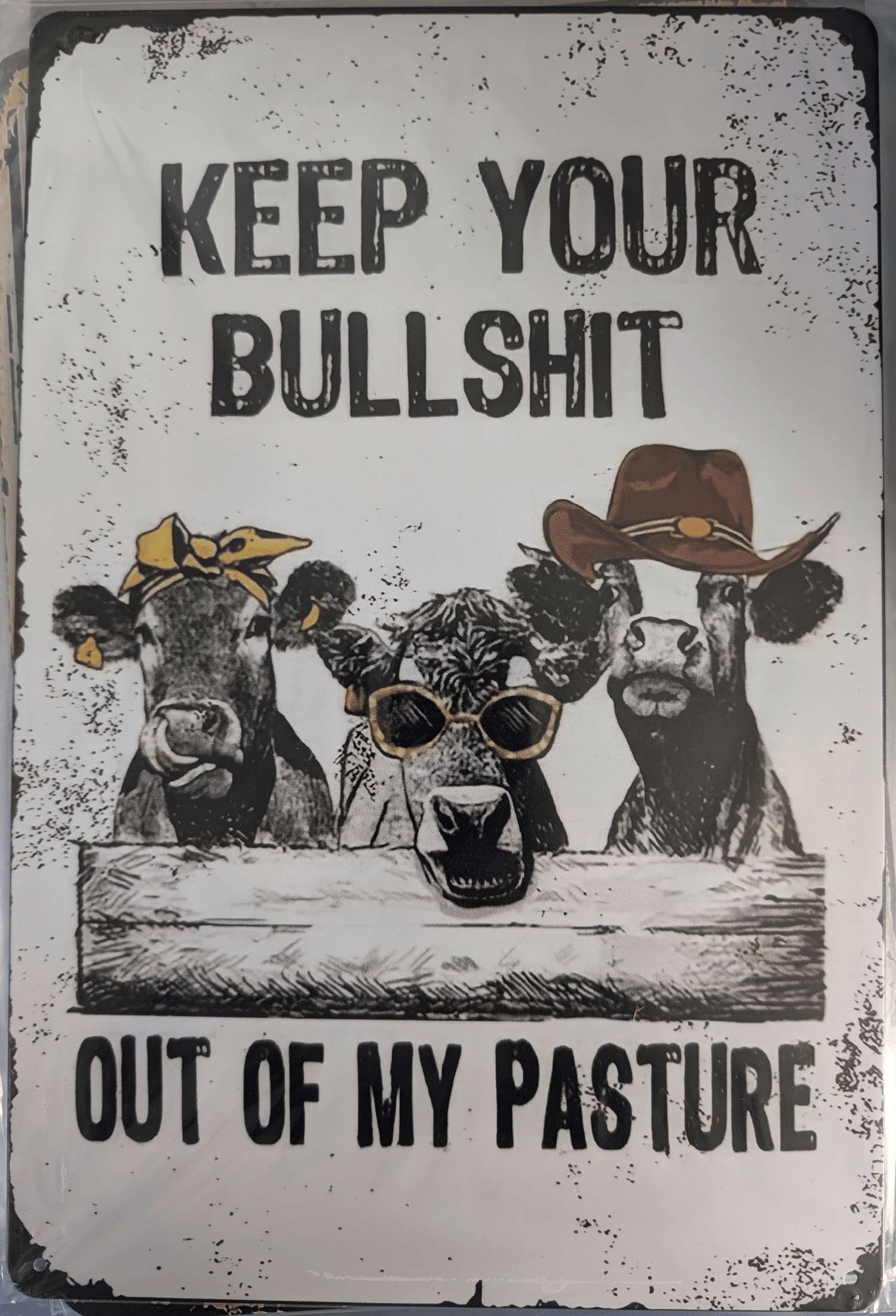 Keep your BS out of my pasture funny sarcastic wall art. Download, print, and frame it for less than $5. Buy your frame from a Dollar store, flea market, or discount store. Hang on your wall or give as a gift. Choose 8 by 10 or 5 by 7.