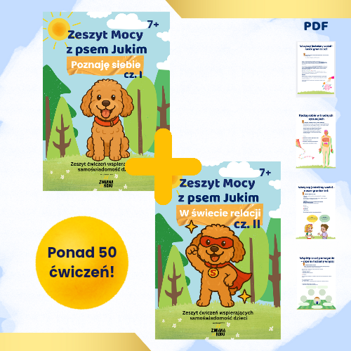 PDF Zeszyty Mocy z psem Jukim – cz. I „Poznaję siebie” + cz. 2 " W świecie relacji” (7+)