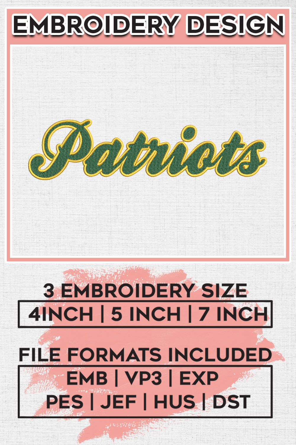 NCAA Patriots Football Team Writing Logo Embroidery Designs, NCAA George Mason Patriots Machine Embroidery Files, NCAA Logo embroidery designs, NCAA George Mason Logo, Digital Download