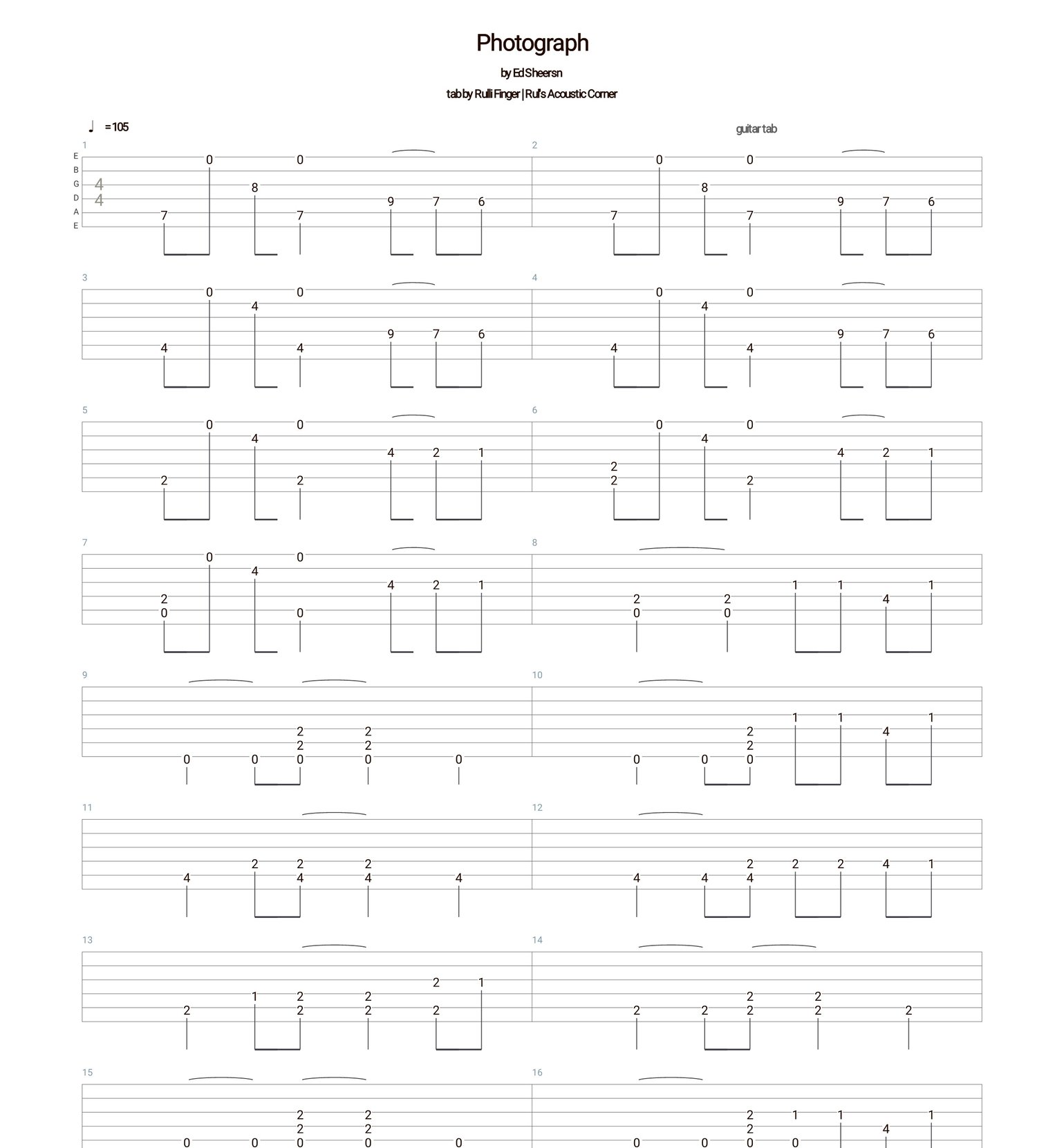 Photograph - Ed Sheeran Fingerstyle Guitar sheet music PDF + video