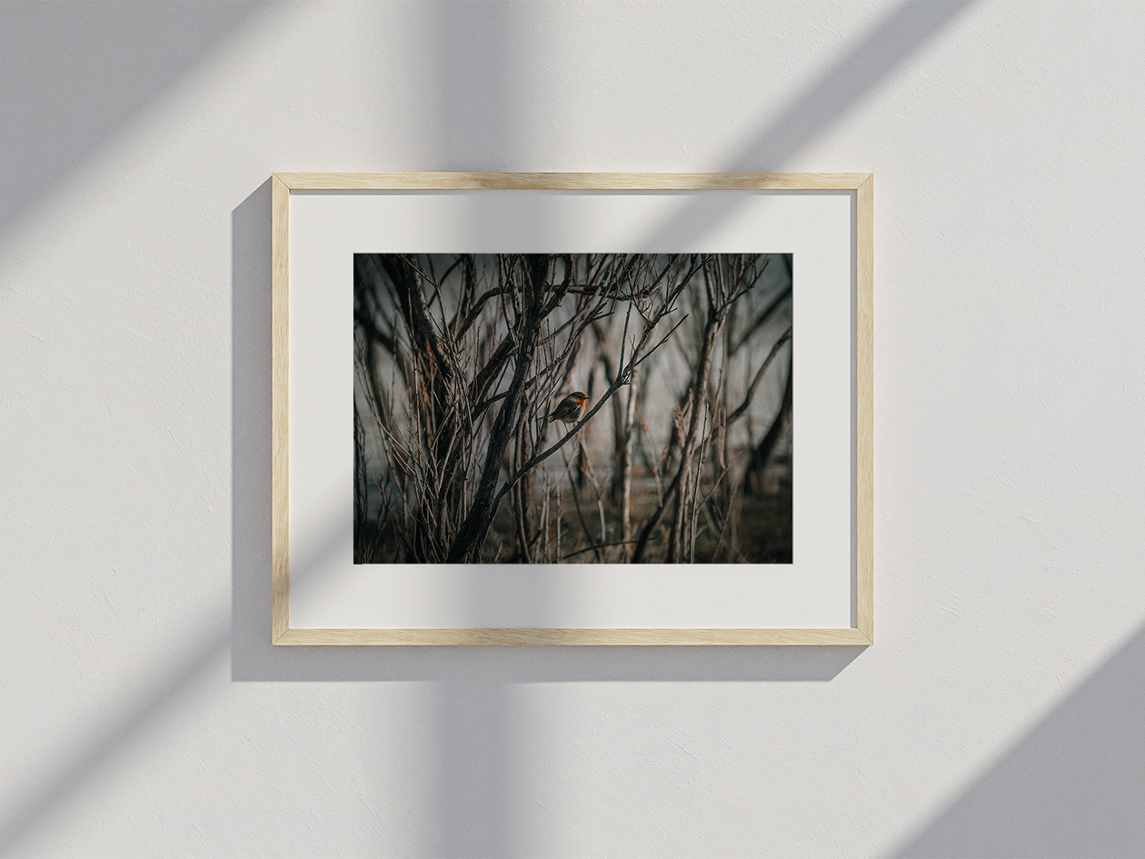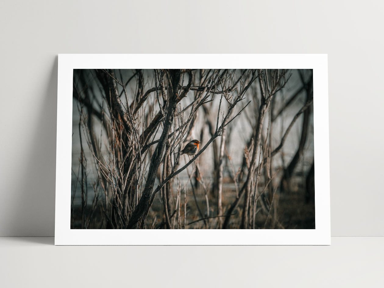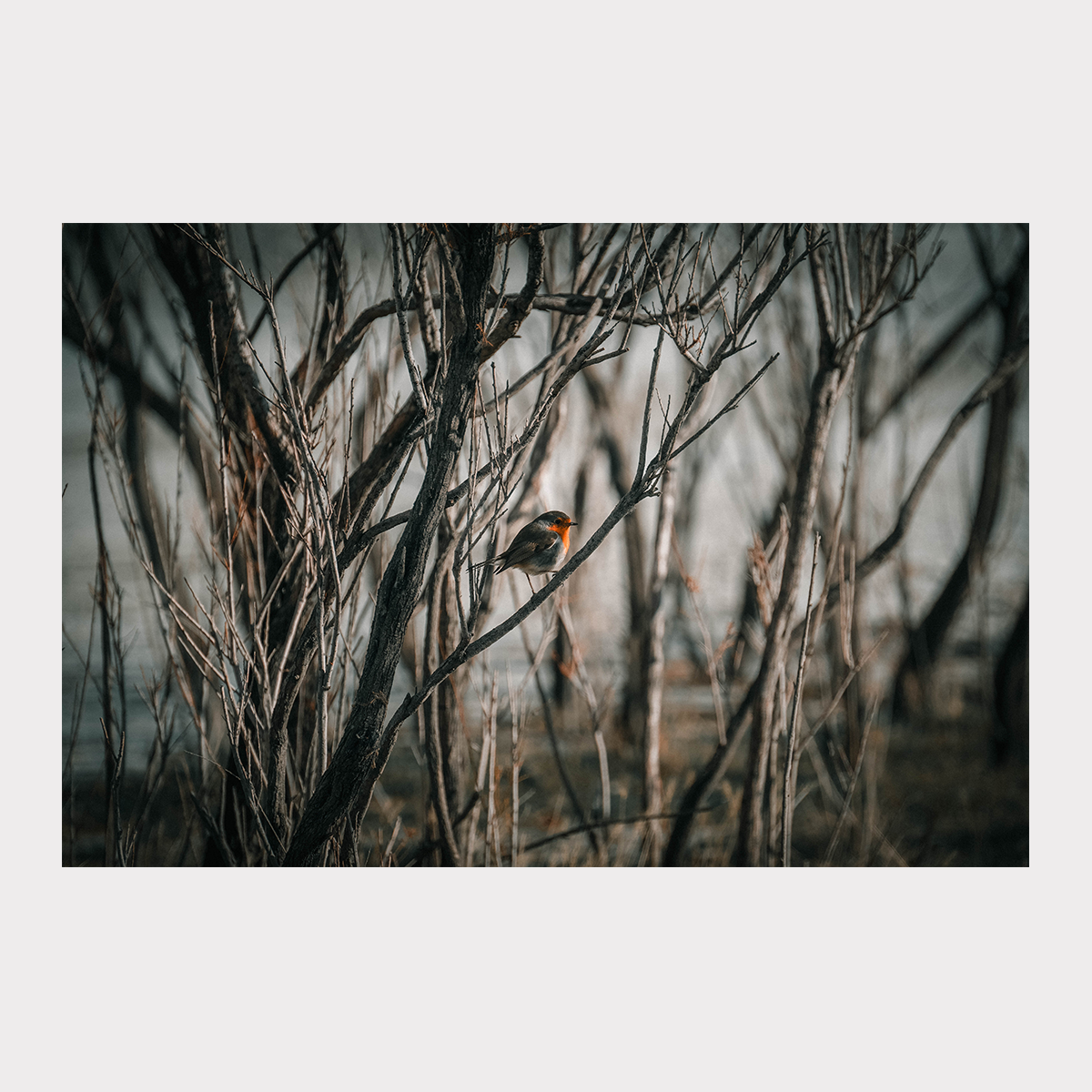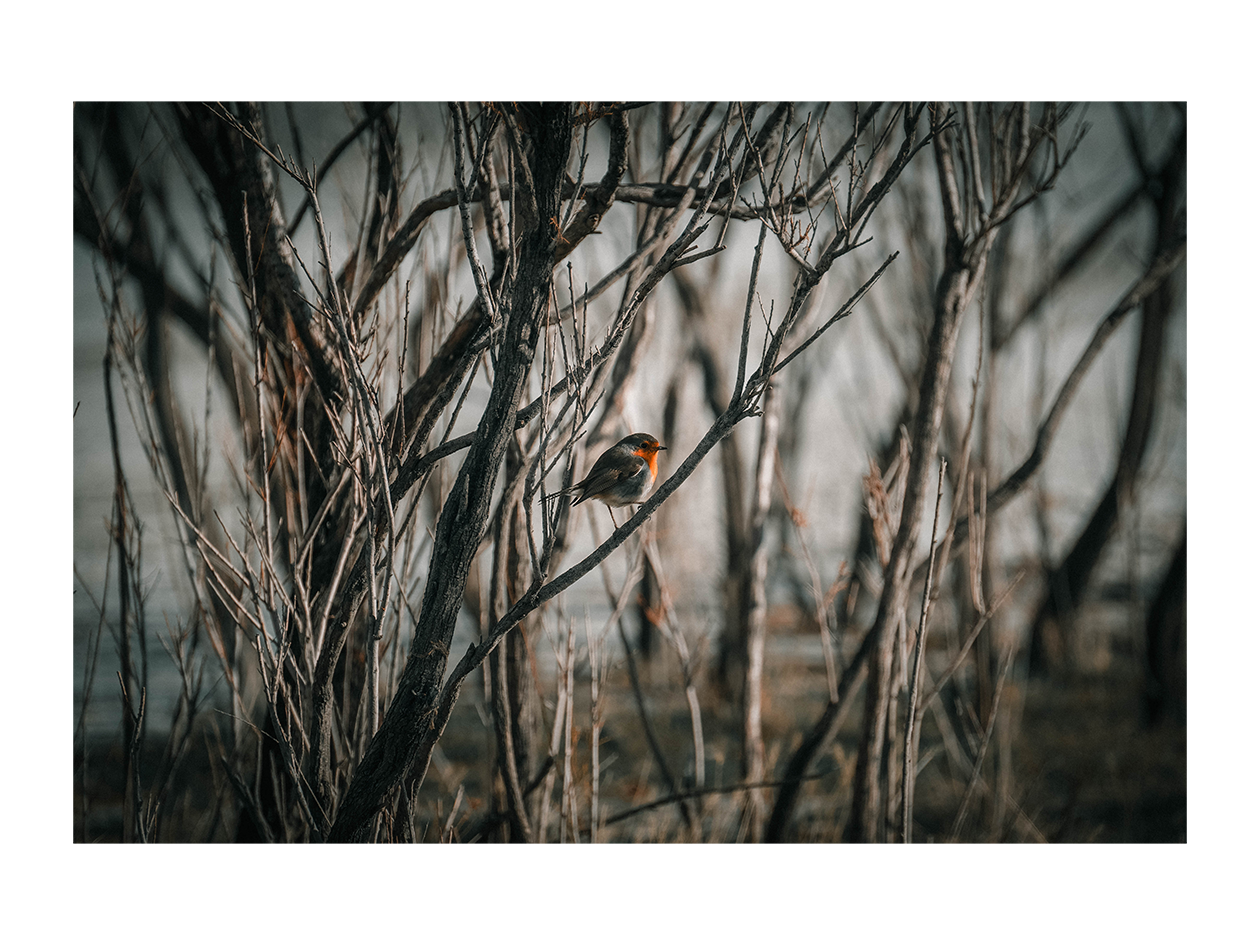 Cette image rend hommage à ces instants simples qui marquent profondément un voyage. Elle raconte moins la rencontre avec un oiseau que celle avec un état d’esprit : celui où l’on recommence à observer, écouter et ressentir pleinement ce qui nous entoure. Dans ce paysage paisible, ce petit rouge-gorge est devenu le symbole d’un apaisement retrouvé, d’un retour à l’essentiel après le tumulte.