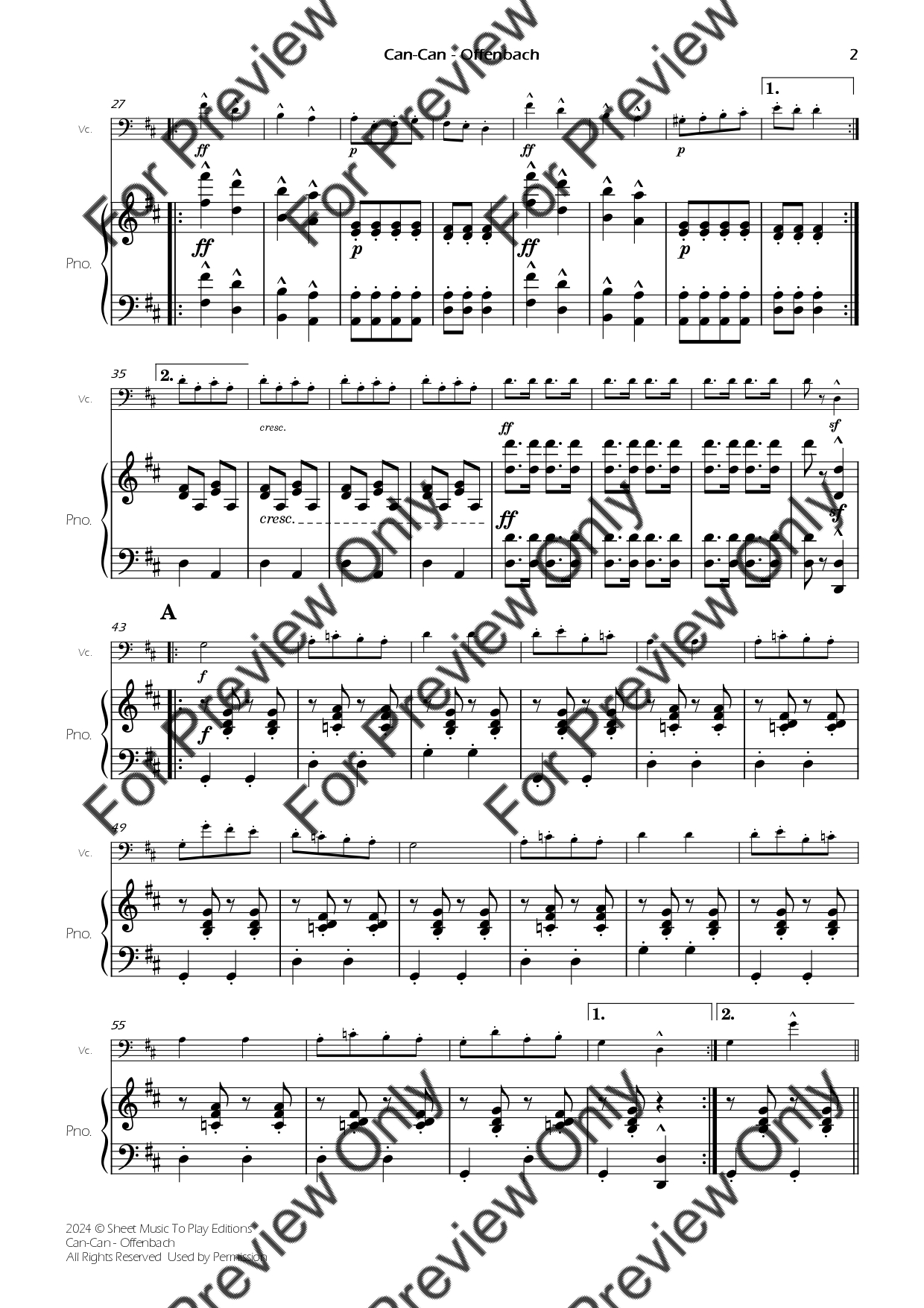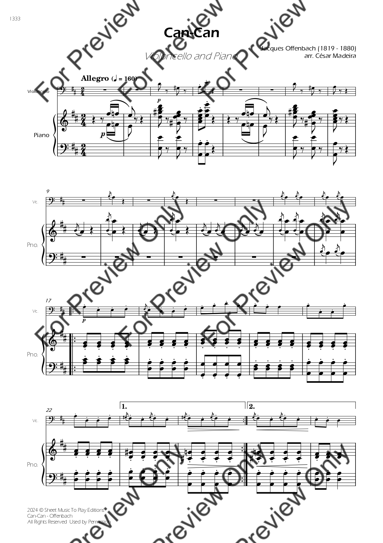Can-Can by Jacques Offenbach. Arrangement for Violoncello and Piano. With Full Score and Individual Parts. Have fun!