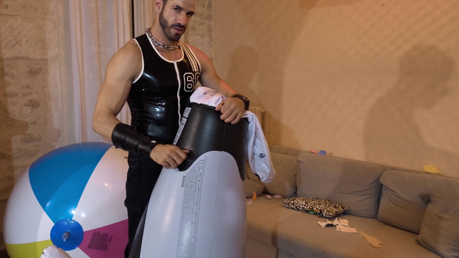 In his last video with inflatable toy Cos deflate his intex orca an one giant beach balloon.