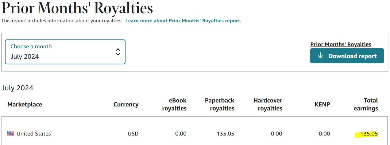 July 2024: $135.05 in total royalties