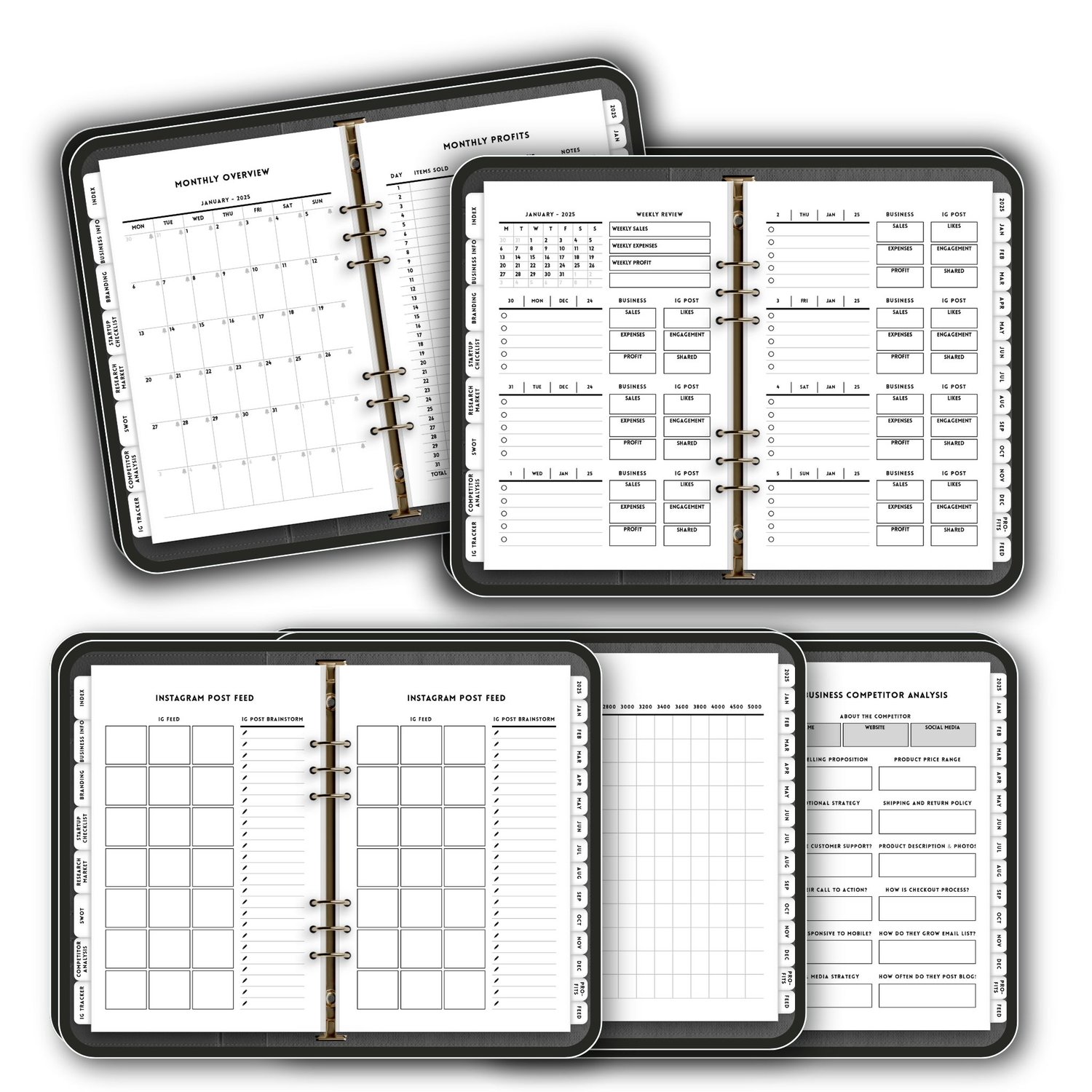 The 2025 Business Planner includes 80 digital pages packed with essential sections such as business info, branding, startup checklist, market research, SWOT analysis, competitor analysis, Instagram tracker, Instagram feed planner, profits tracking, and a full 2025 calendar. Additionally, it features monthly and weekly planner pages to help you manage your time effectively. This planner is perfect for entrepreneurs and business professionals looking to streamline their planning process.