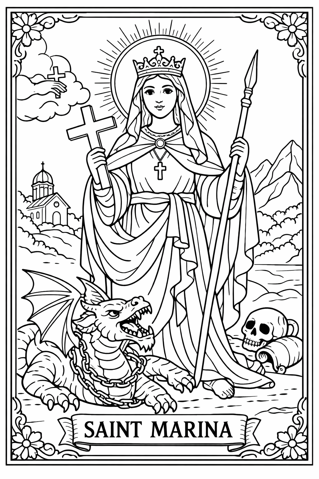 Saint Marina, 49 designs, coloring ebook, digital printable product, instantly download
