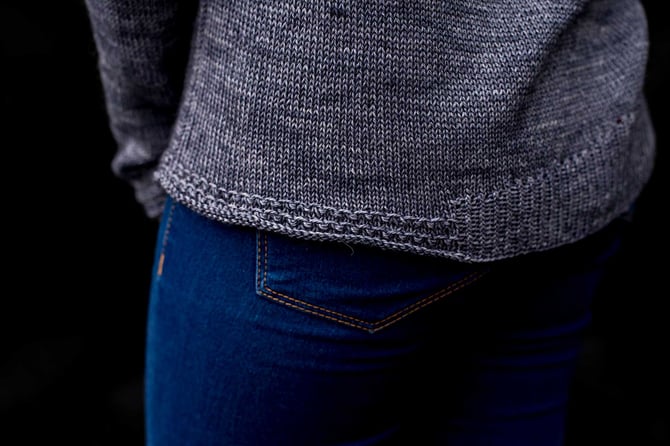 The sweater is meant to be worn with approx. 5.5” [14 cm] of positive ease.