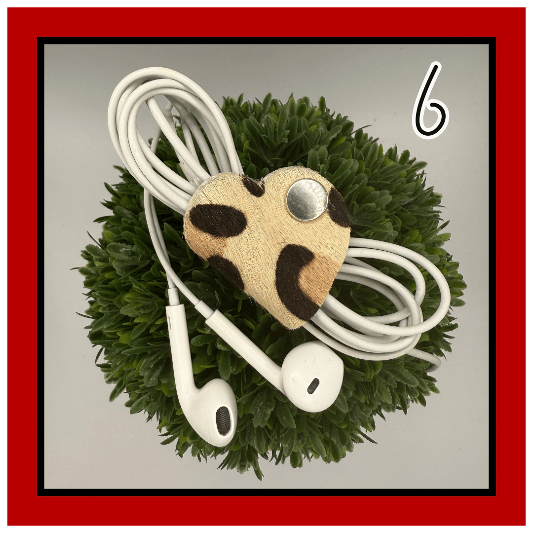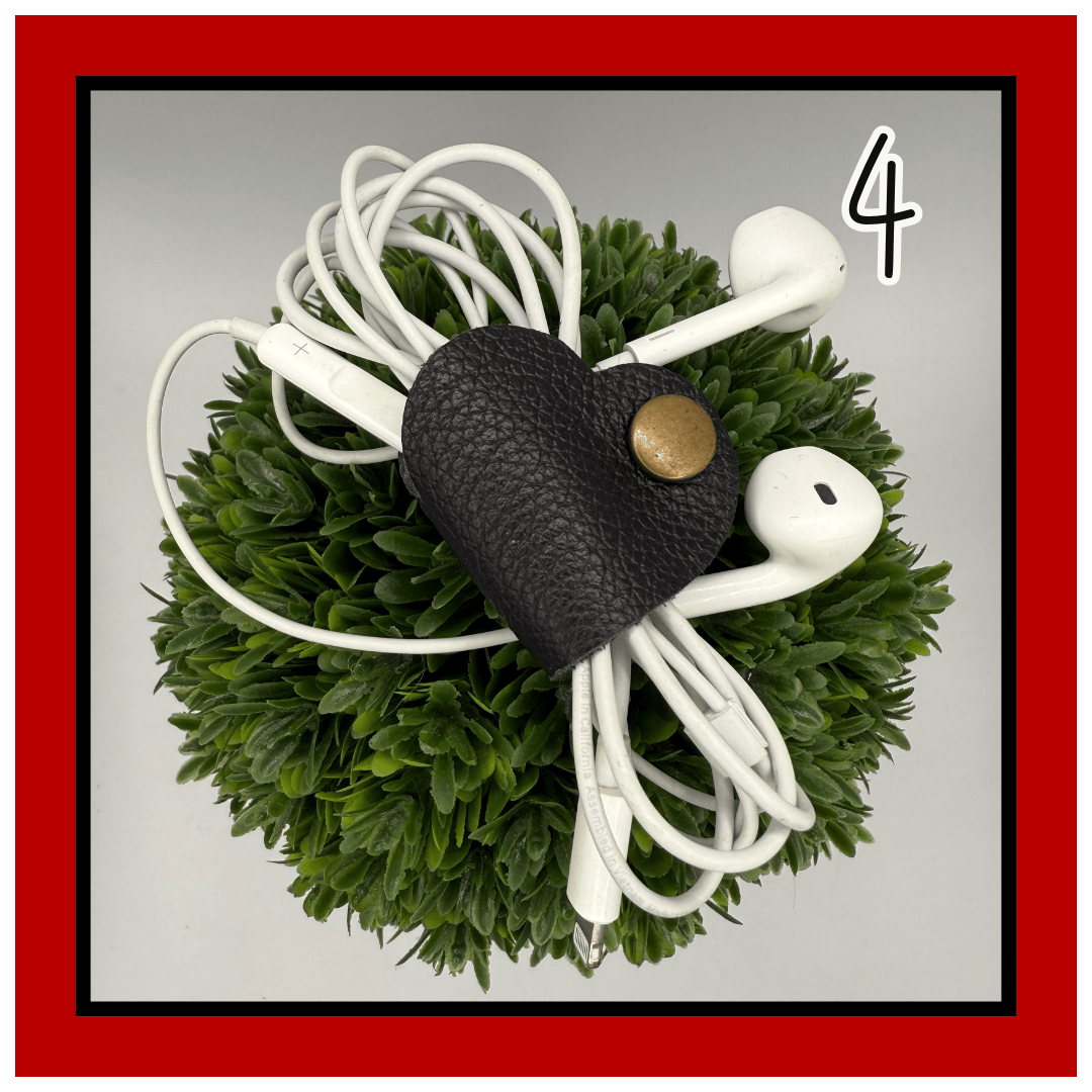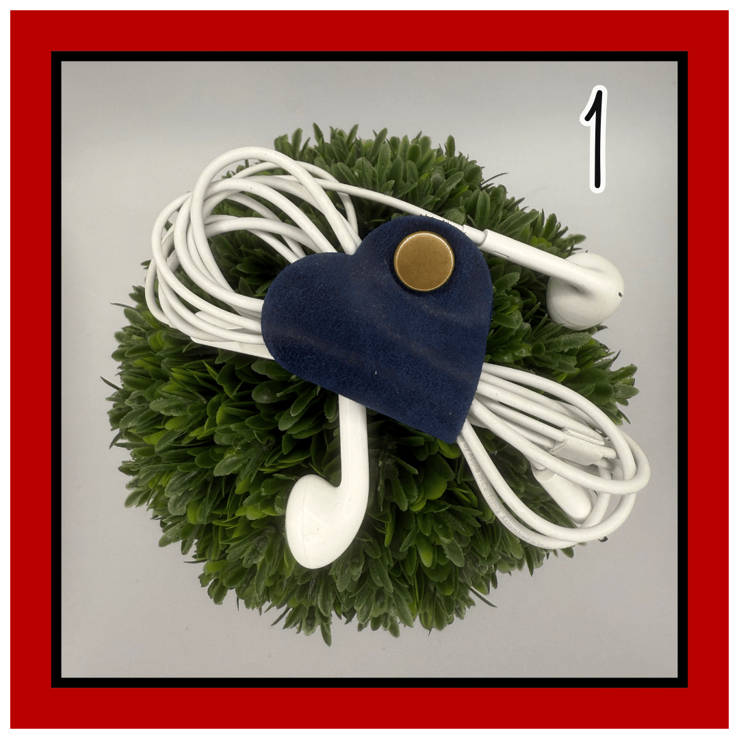 Meet Lennon—your everyday lifesaver in the shape of a heart. This 1.5” leather tether is small but mighty, snapping neatly around your cords, earbuds, chargers, or any little things that love to tangle.