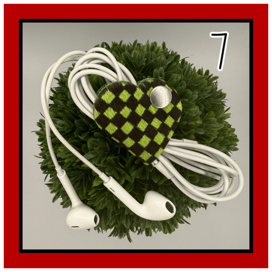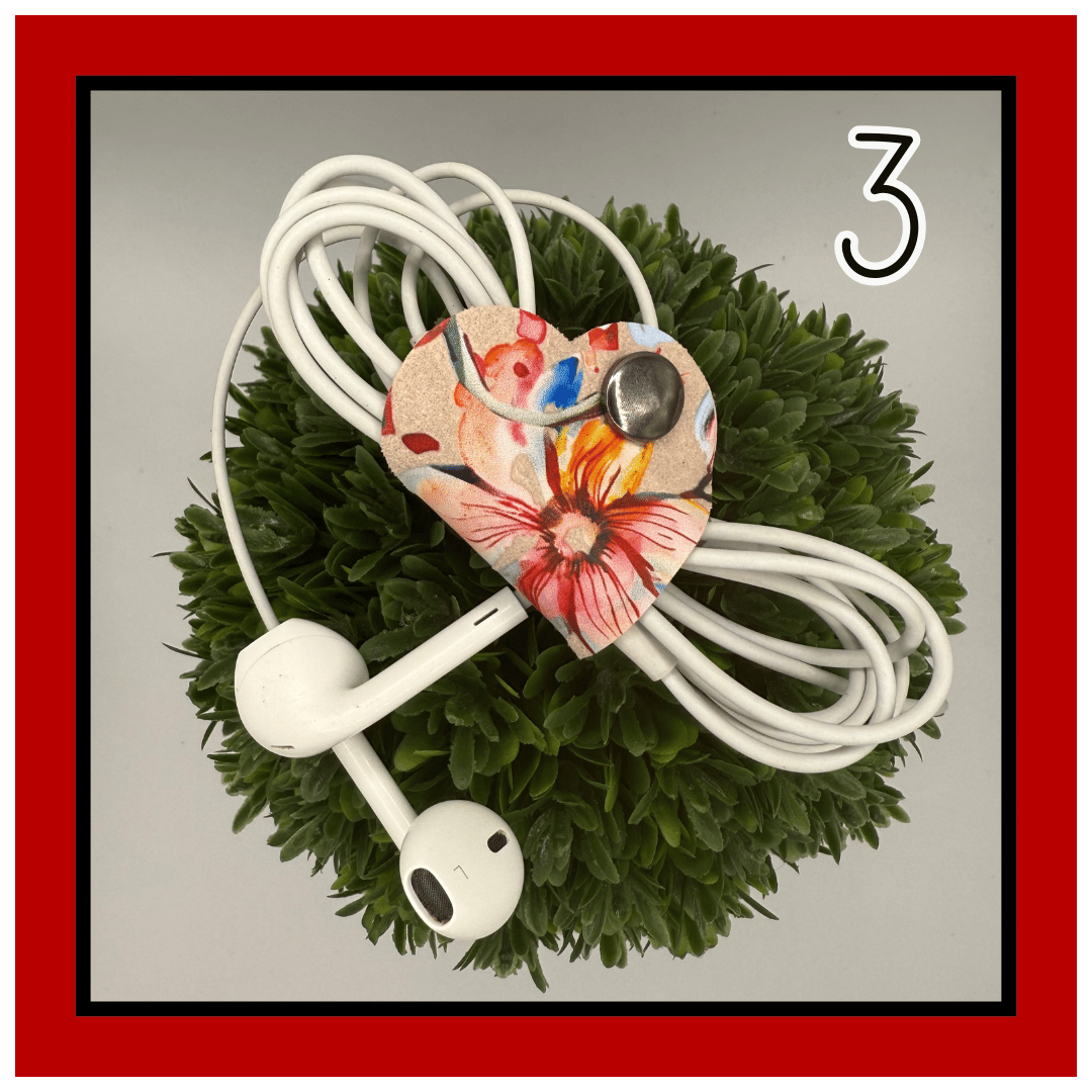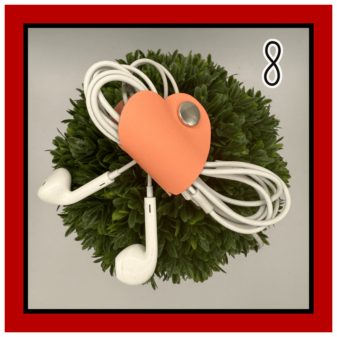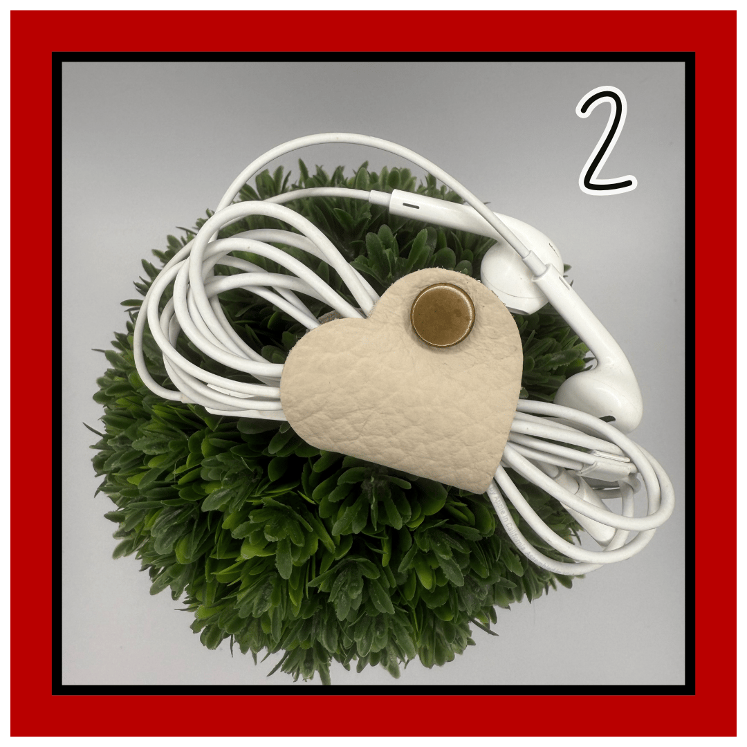 Meet Lennon—your everyday lifesaver in the shape of a heart. This 1.5” leather tether is small but mighty, snapping neatly around your cords, earbuds, chargers, or any little things that love to tangle.