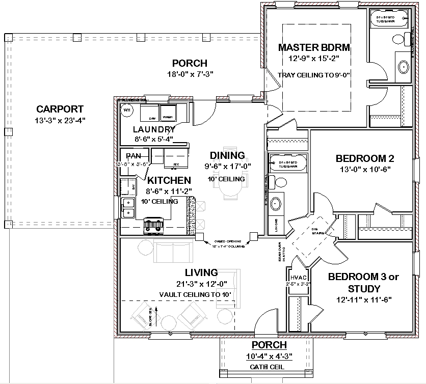 Ceiling Height: 8' throughout with Vaulted Ceiling to 10-0 in Living, Tray Ceiling 10 10'-0" in Master and 10'-0" flat ceiling in Kitchen and Dining.