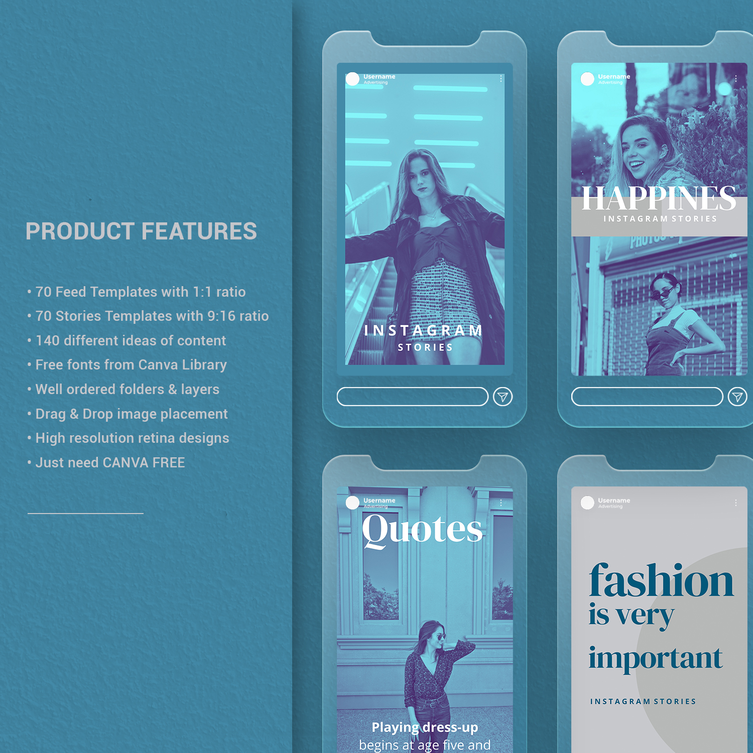 - 70 Story Post Templates: Present outfit inspiration, styling guides, exclusive launches, and quick fashion tips in captivating story formats.