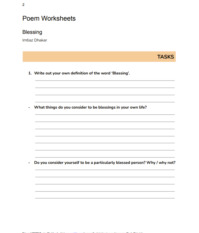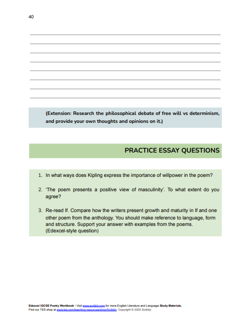 A highly detailed, printable pdf workbook that guides students through all 16 poems for the Edexcel iGCSE Poetry Anthology with a range of interesting, creative and analytical exercises.