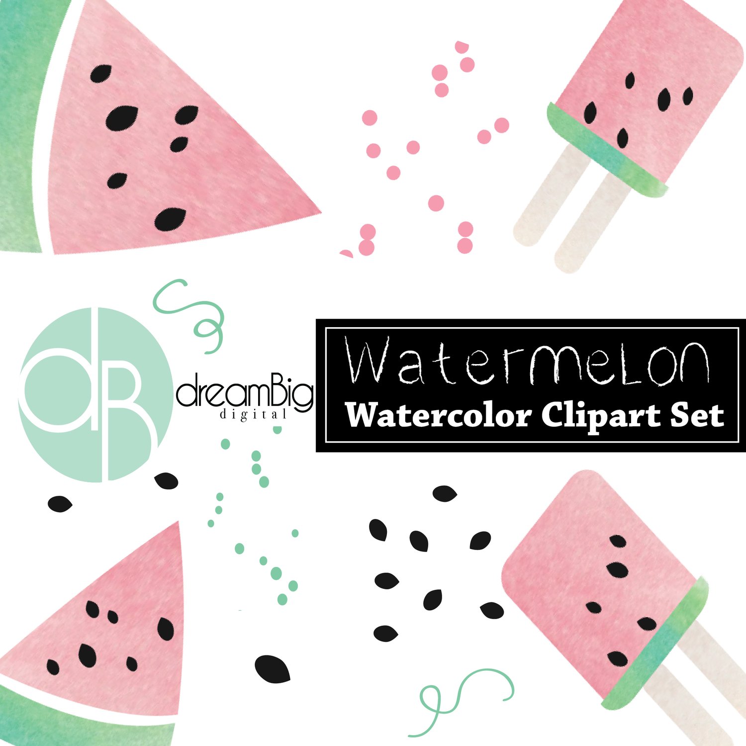 This whimiscal clip art graphic bundle were created with a vectorized watercolor background. Cute Clip Art for any watermelon design project. 8 Digital Files Included