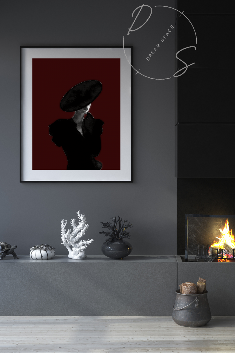 This is DIGITAL PRINTABLE PRODUCT | Instantly download and print this Lady in Black Artwork.