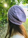 This hat—with both written and charted directions—has a classic 2x2 rib, some easy texture in the body, and a relaxing stockinette body. Written in three sizes, with options for either beanie or slouchy, you can choose what fits best into your wardrobe.