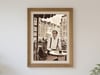 Intellectual Serenity at a European Café | Sepia Vintage Art Print uk054