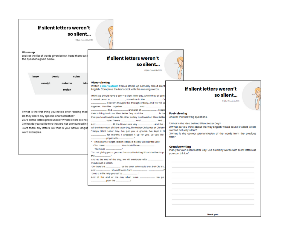 A short but sweet lesson plan about silent letters in English, inspired by Michael McIntyre's humorous exploration of how English would sound if silent letters weren't actually so silent.