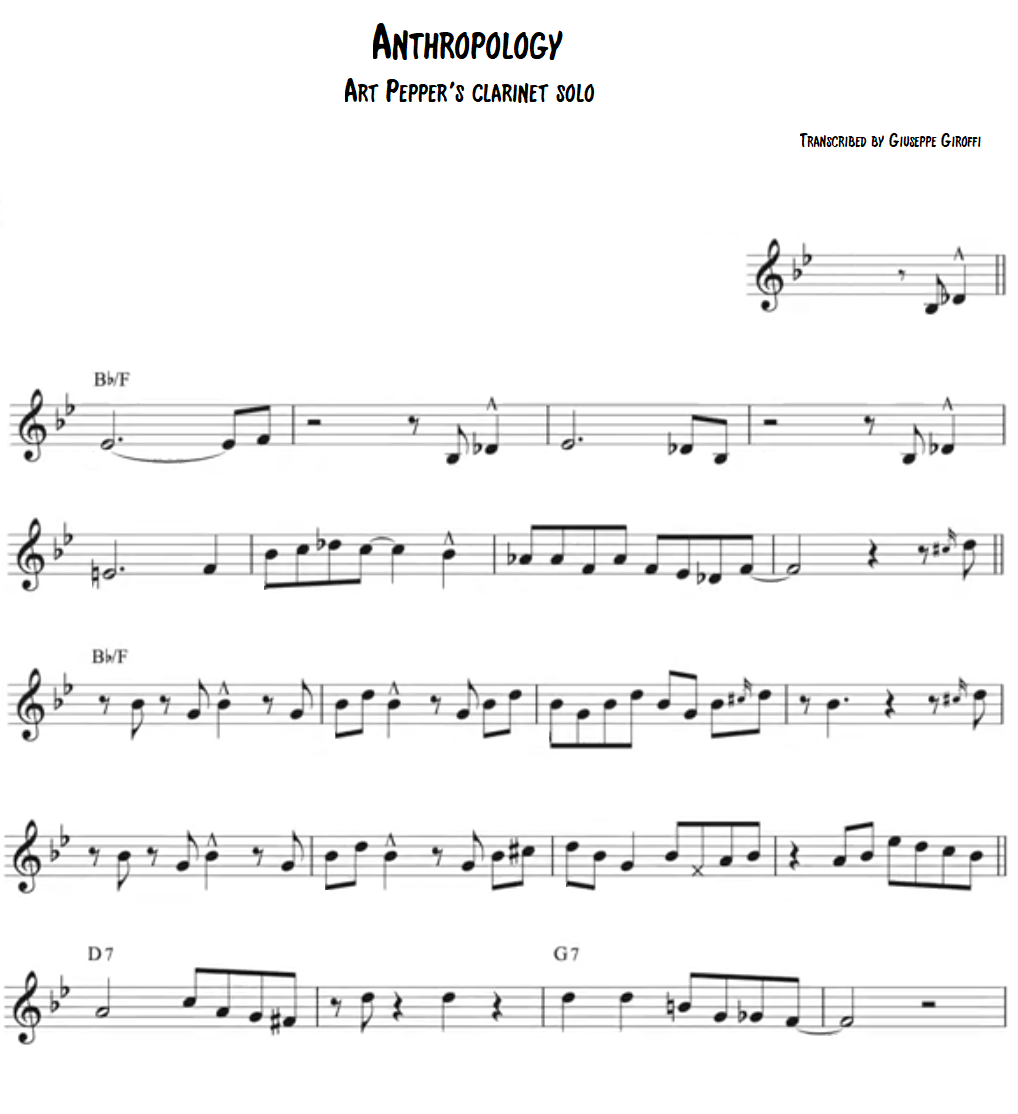 Art Pepper's clarinet solo on Anthropology - Transcription (Bb)