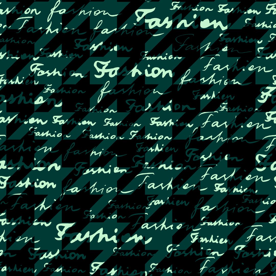 Green & white “Fashion” typography in mixed fonts over black houndstooth base