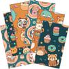 Each paper features delightful characters like pandas, foxes, bunnies, and bears paired with donuts, cupcakes, ice cream, and cakes. The soft color palette and seamless patterns make this pack incredibly versatile for both digital and printable projects.
