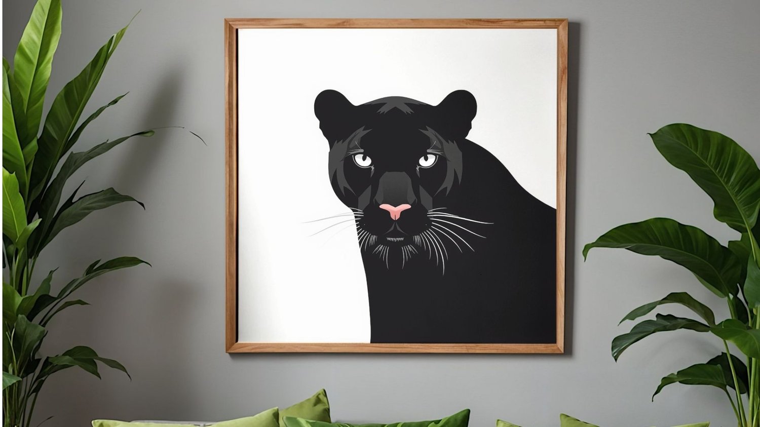 Black and White Panther Wall Art Printable – Bold Minimalist Poster