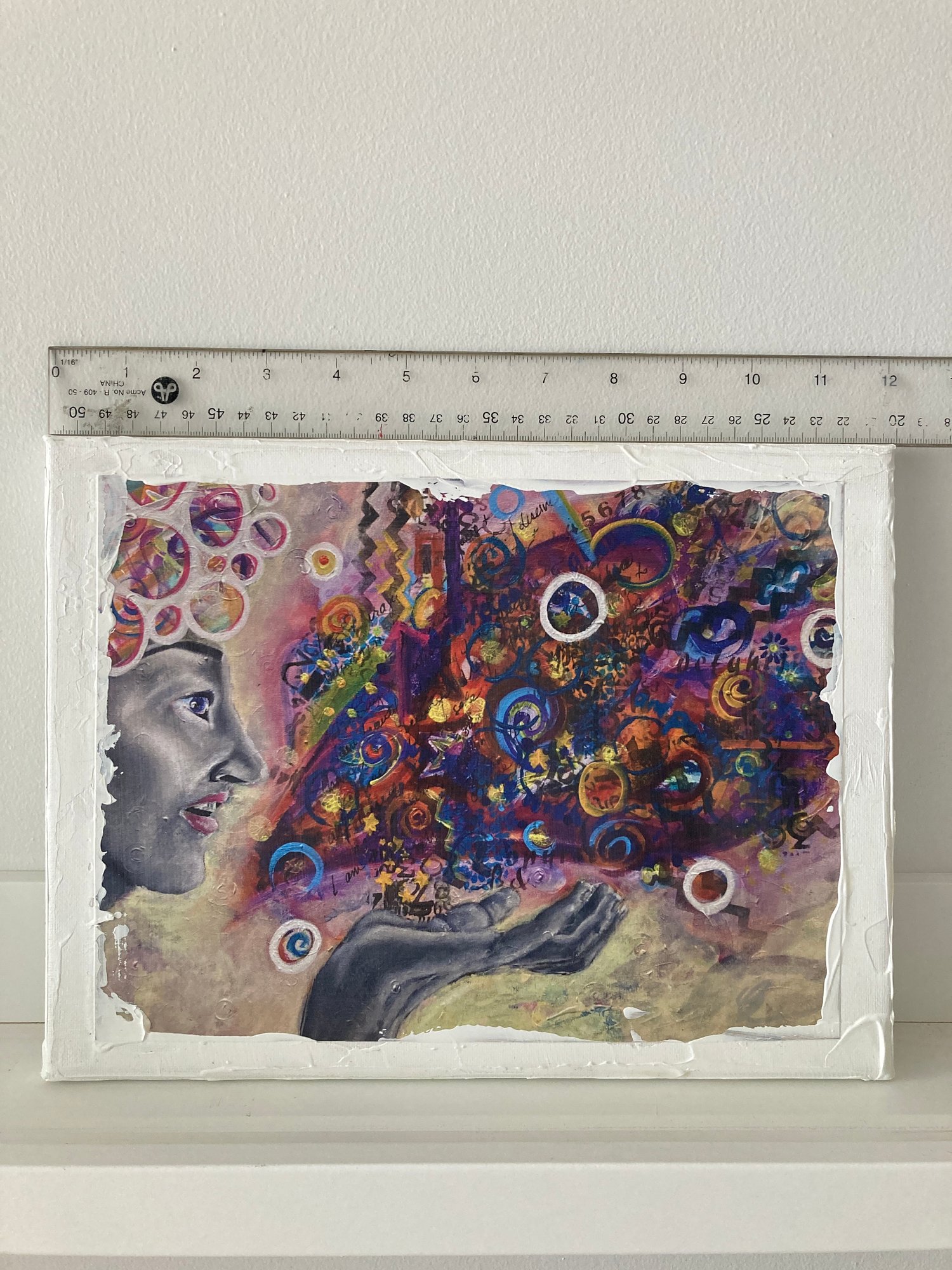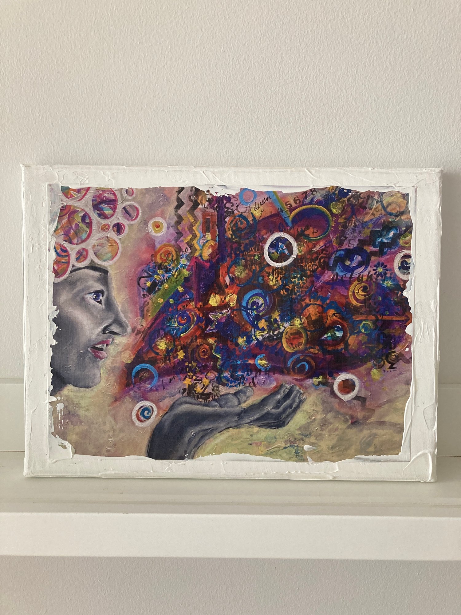The left item is of the mounted print. It is based on the acrycli original, on the right hand side. The original is not for sale.