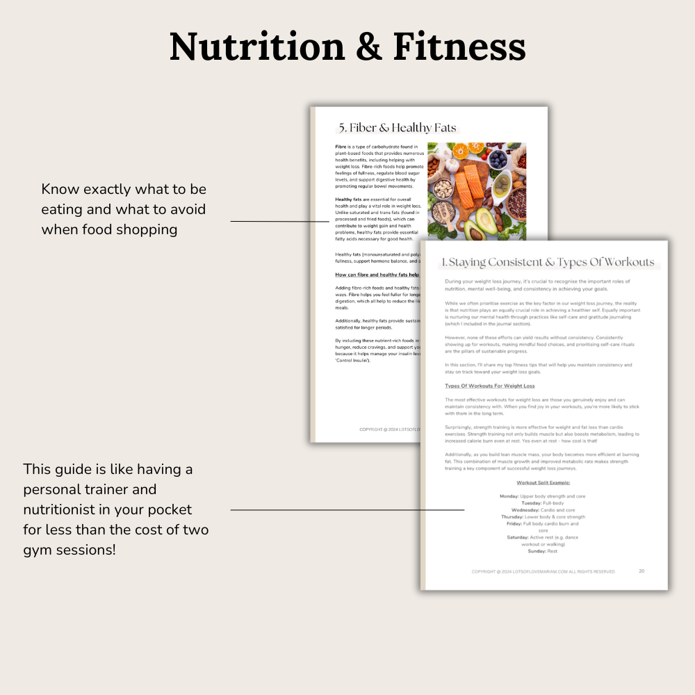 - Goal Setting: Master the art of setting effective weight loss goals with a SMART goal worksheet and a dedicated ‘Why’ page to keep you motivated.