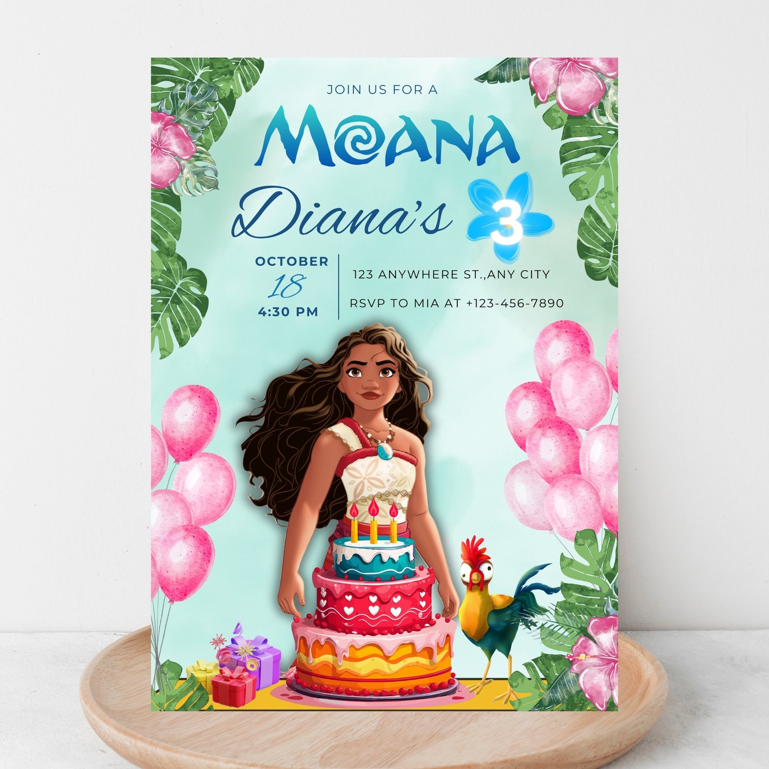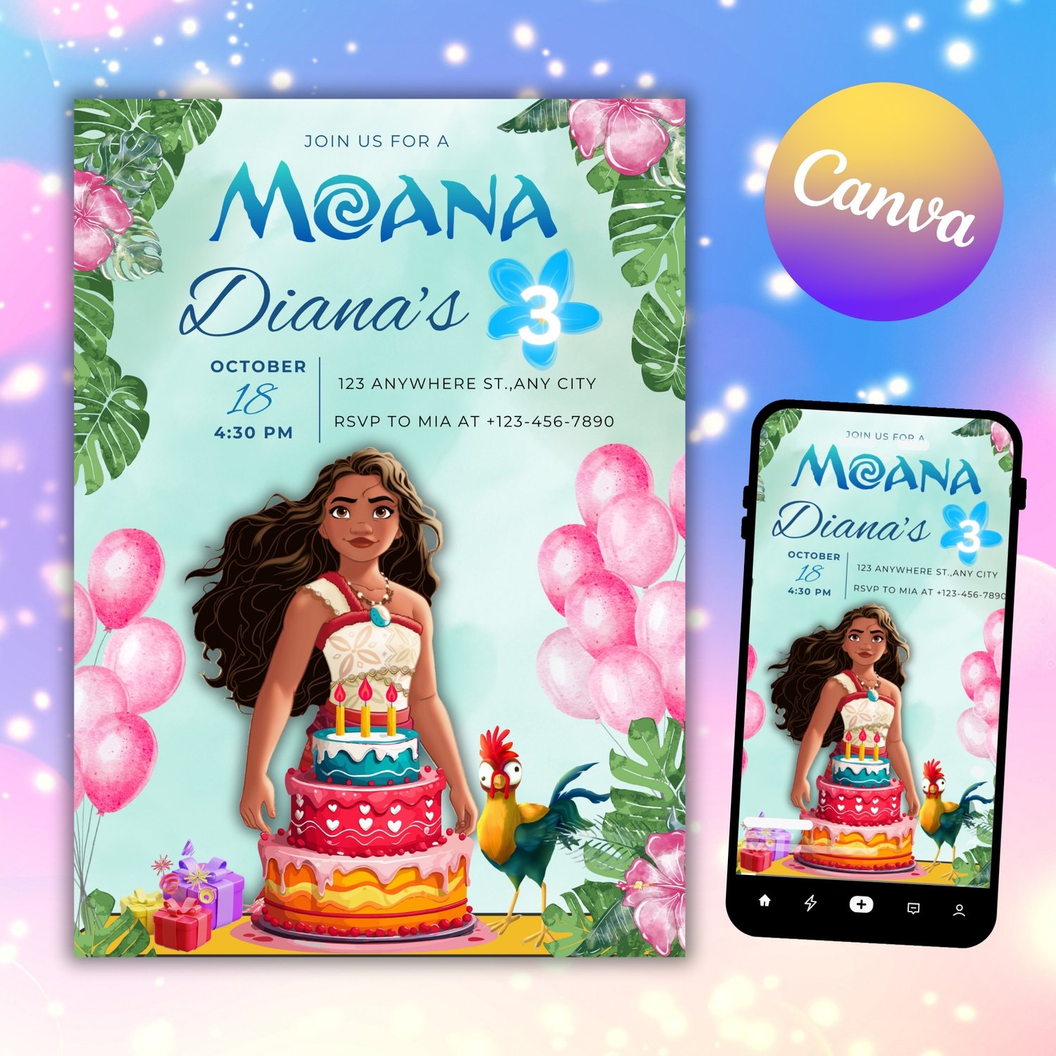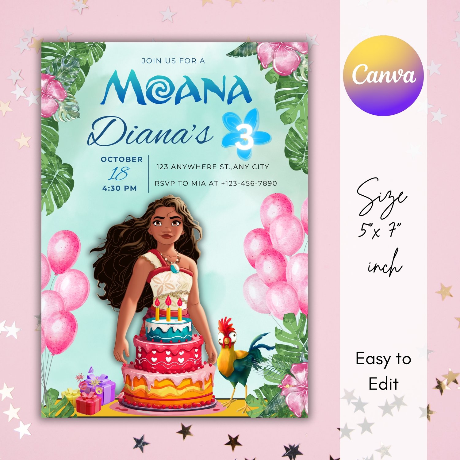Bring the magic of Moana to your child’s special day with this editable Moana birthday invitation! 🌺Perfect for a tropical luau, beach party, or Moana-themed celebration, this printable digital template is easy to customize with your party details using Canva.