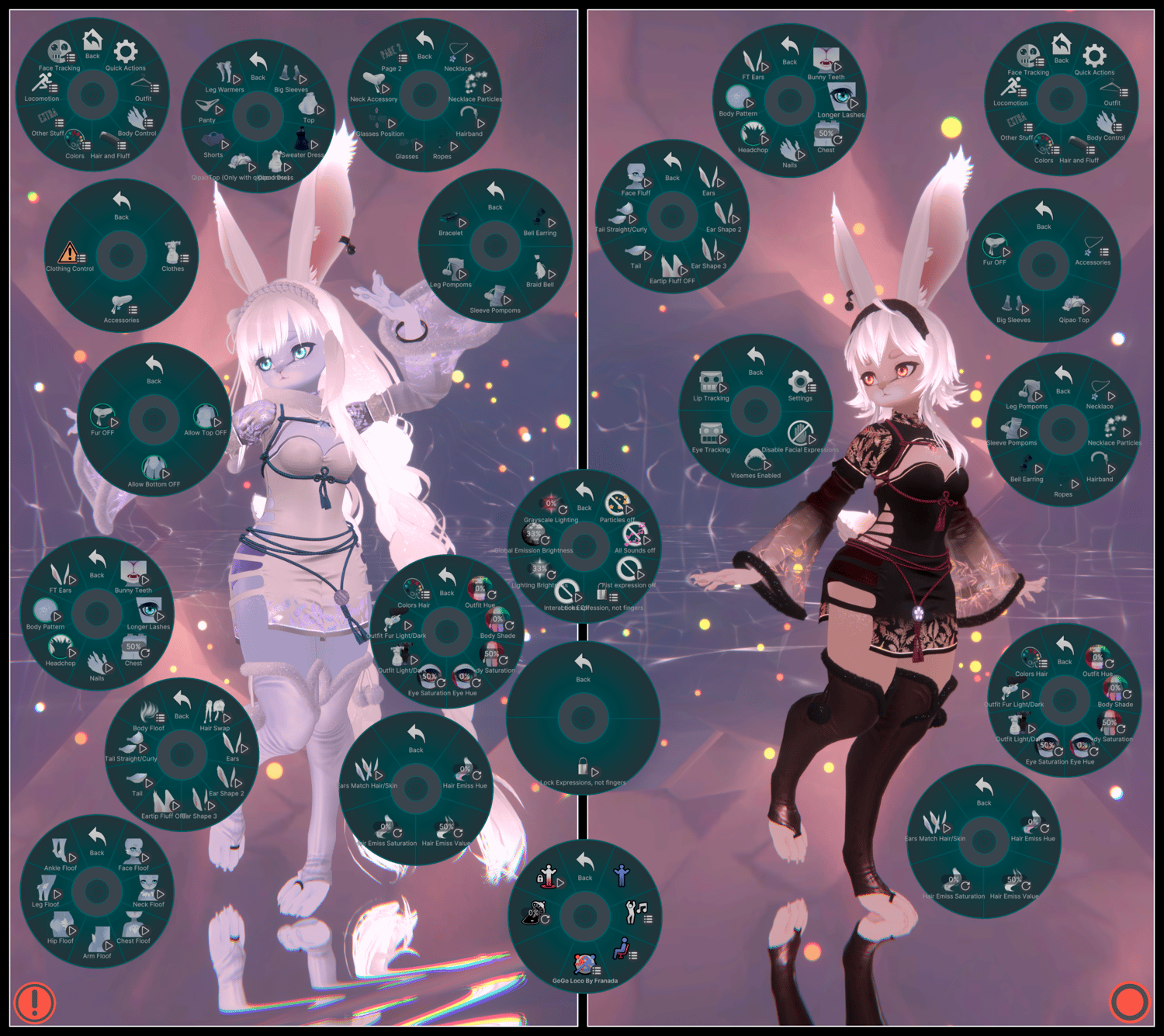 Chest shape radial (not completely flat), Longer Lashes, Nails, Bunny Teeth, Body Pattern, FT Ears, Headchop (Allows you to see bunny ears if they are pulled close, recommended to be toggled off when on desktop mode)
