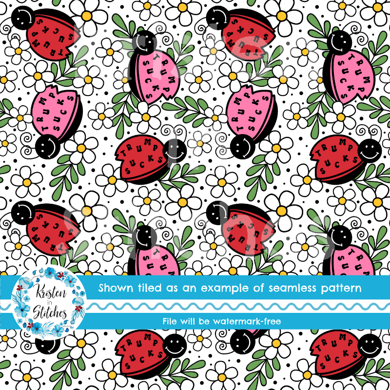 Ladybugs FDT Trump Sucks Floral Seamless Pattern