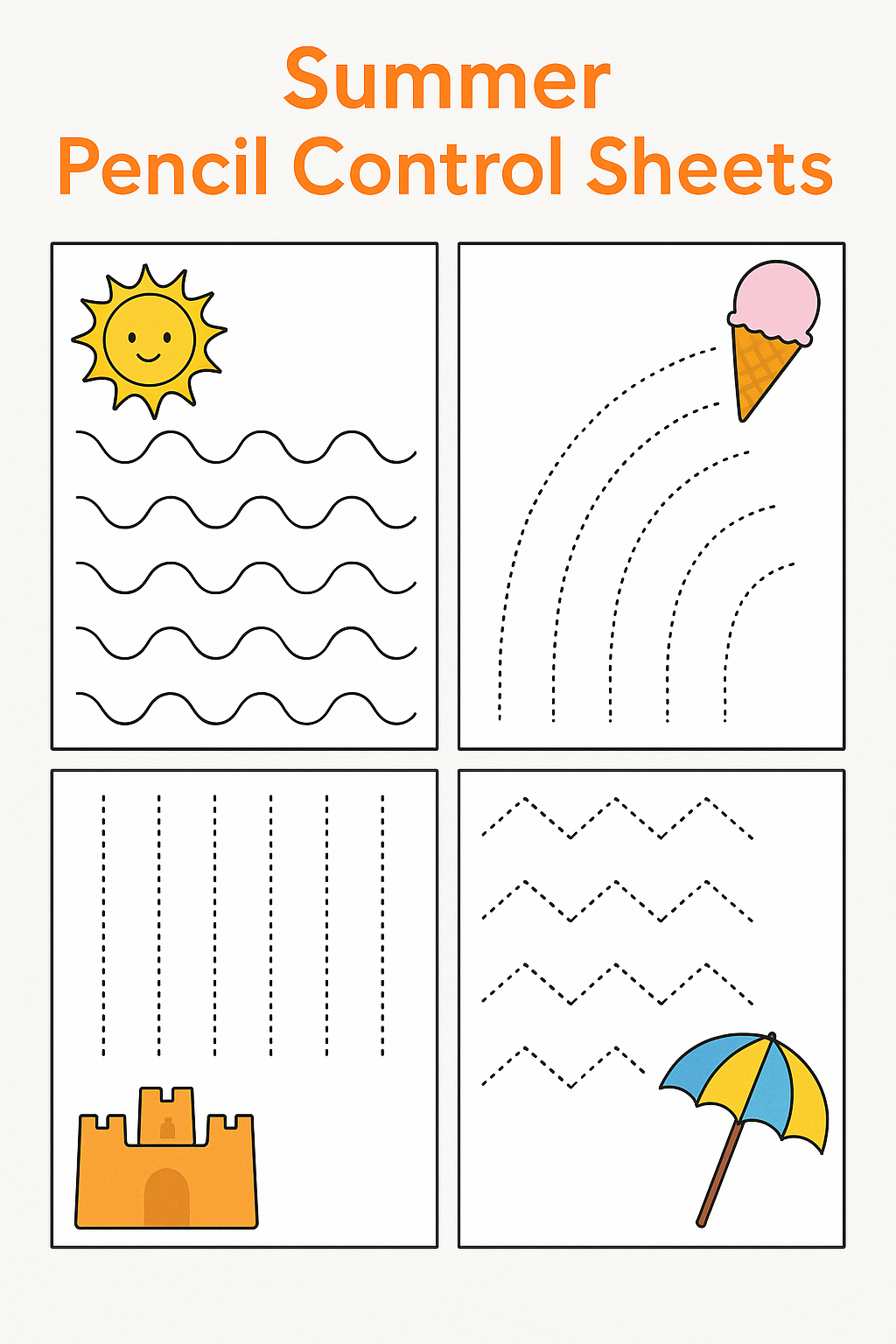 Summer Pencil Control Sheets – Fine Motor Practice (EYFS)W