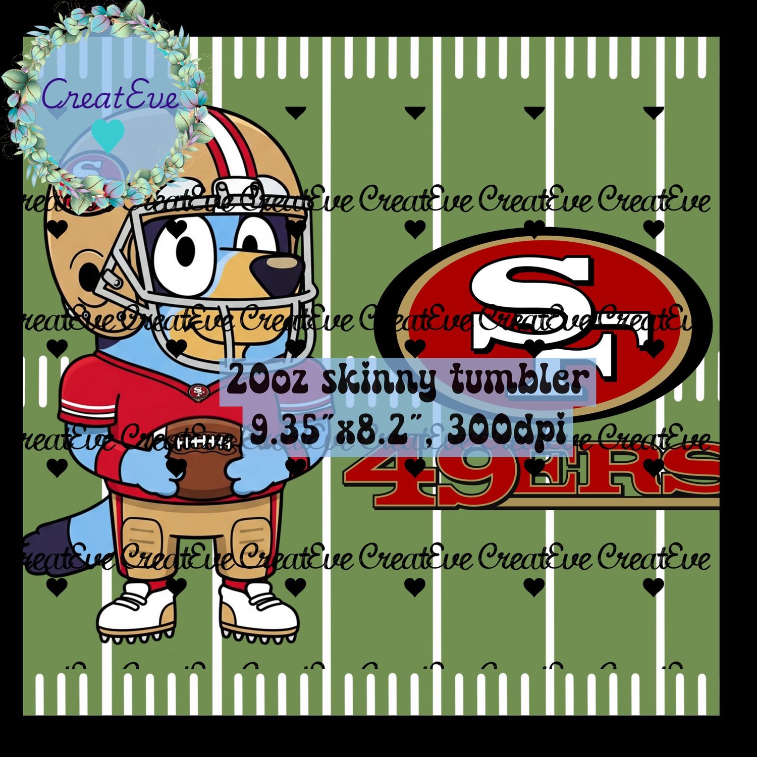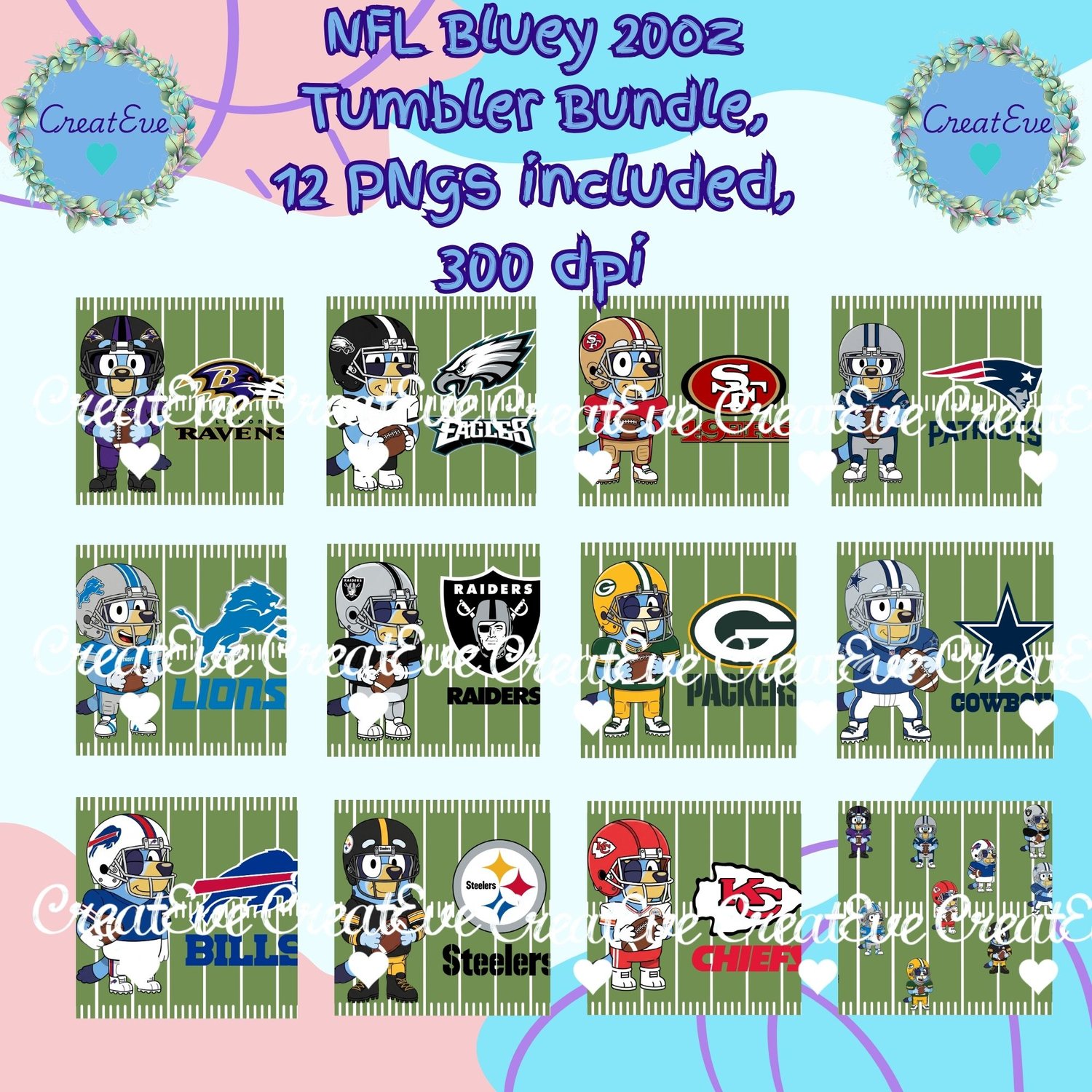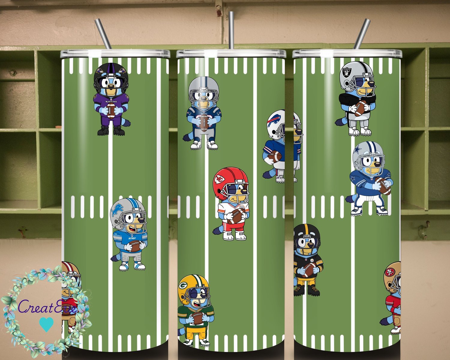 Bluey NFL 20oz Seamless Skinny Tumbler 12 Wrap PNG Bundle