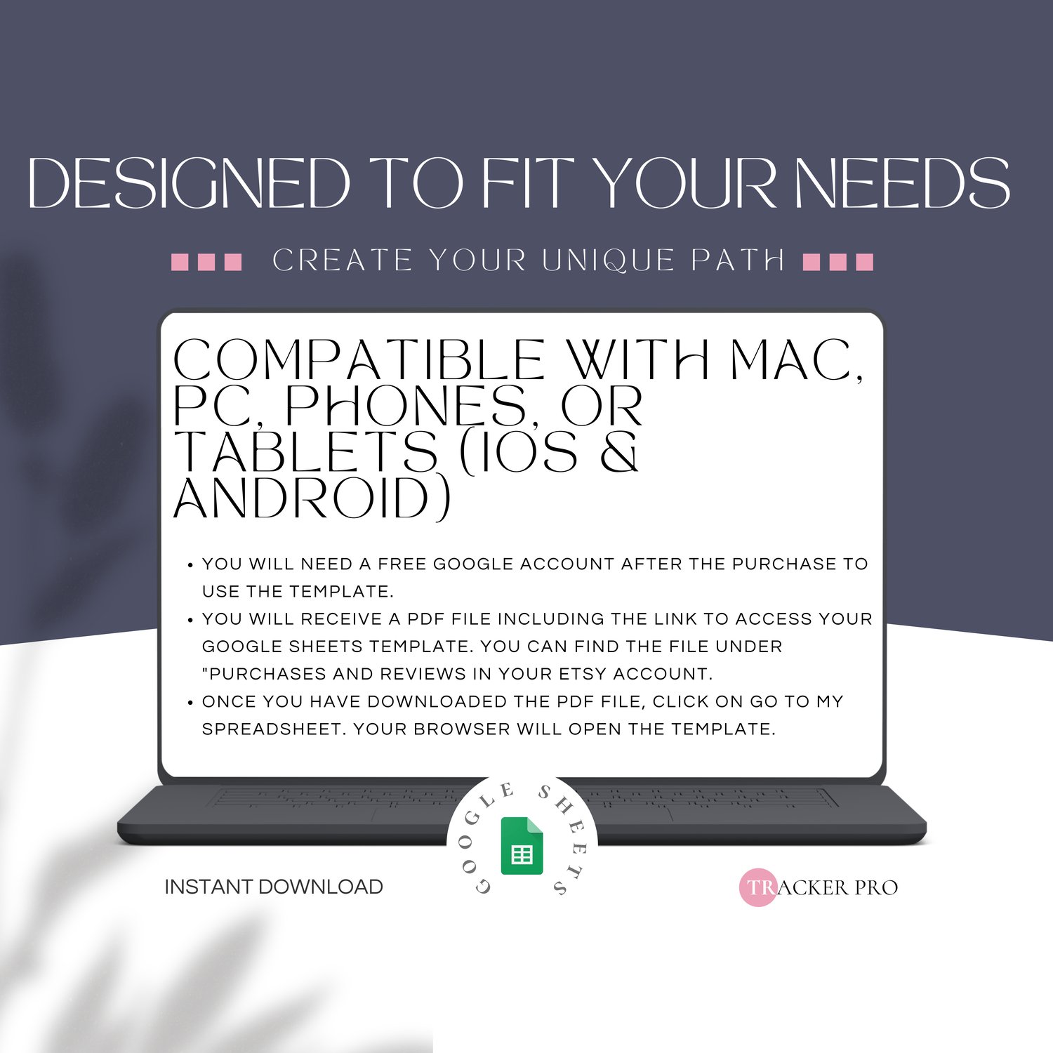 • Digital download: this listing is an instant DIGITAL DOWNLOAD ONLY. No physical product will be shipped. You will receive a PDF file with a link that will take you to your spreadsheet.