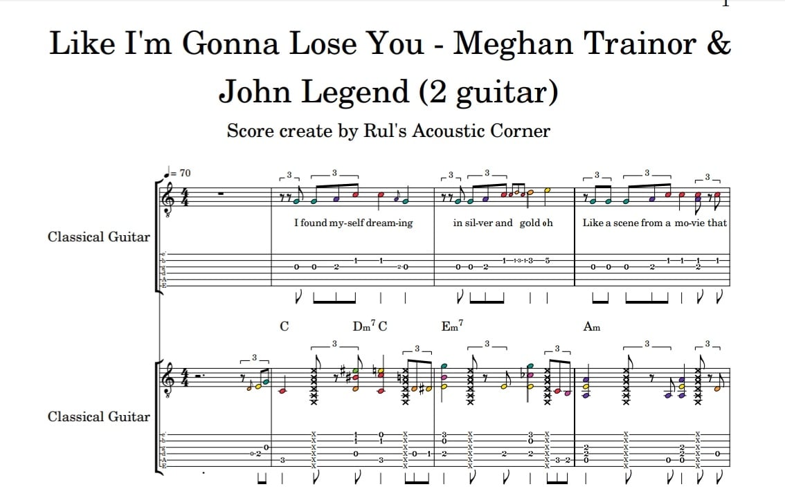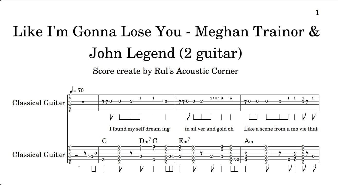 Sampel Lesson Instrumental Meghan Trainor with John Legend - Like Im Gonna Lose You 2 Guitar Musical Notes Tabs High Quality PDF Video Tutorial Download