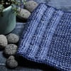 Beide Seiten des Cowl sehen gleich aus, bei der zweifarbigen Variante sind die Längstreifen auf der einen Seite in Farbe1, auf der anderen Seite in Farbe2 sichtbar.