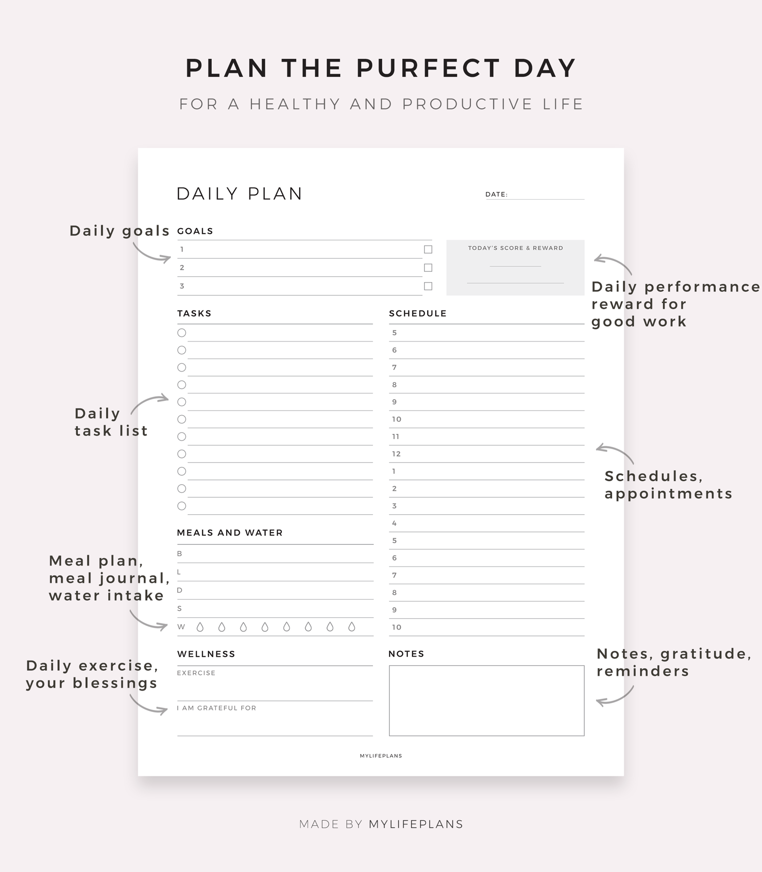 Productivity Daily Planner Digital, Compatible with Goodnotes, Notability, Ipad