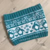To increase the height of the cowl you can knit extra plain rows between motifs or repeat pattern bands as desired. To decrease the height of the cowl you can reduce the plain rows between motifs or omit pattern bands as desired.
