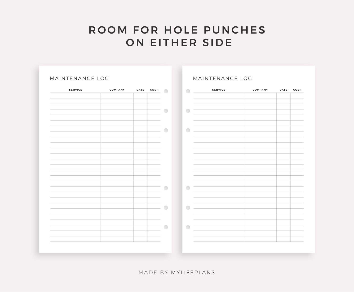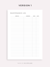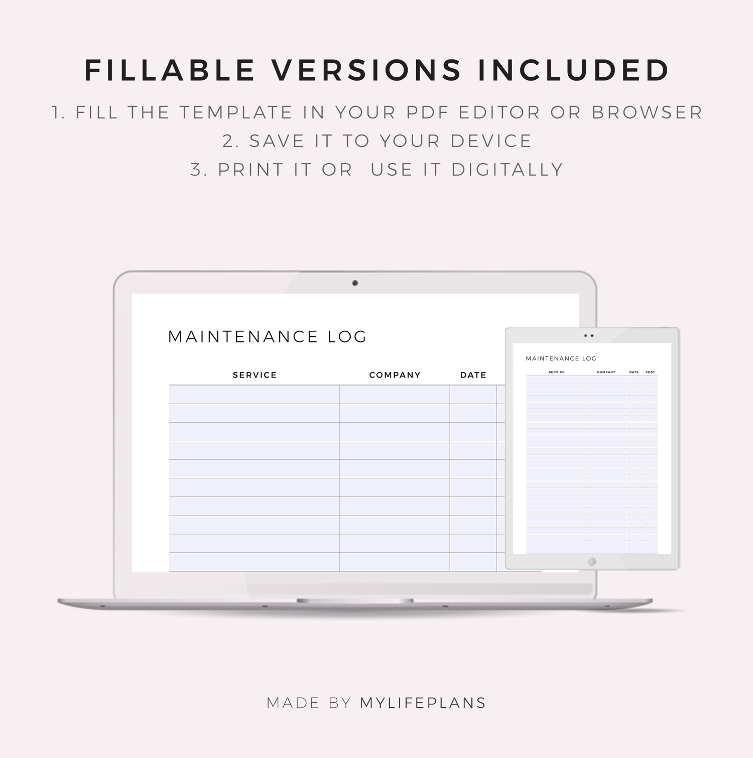 Maintenance Log Printable & Fillable Template, A4/ Letter Size, Instant Download