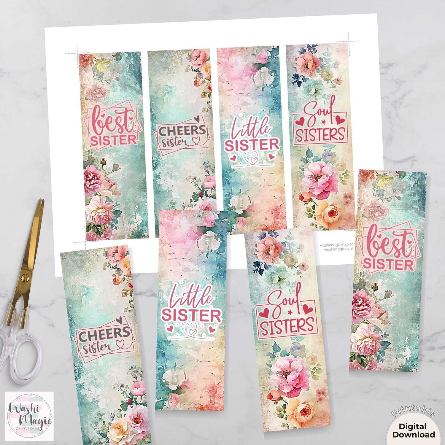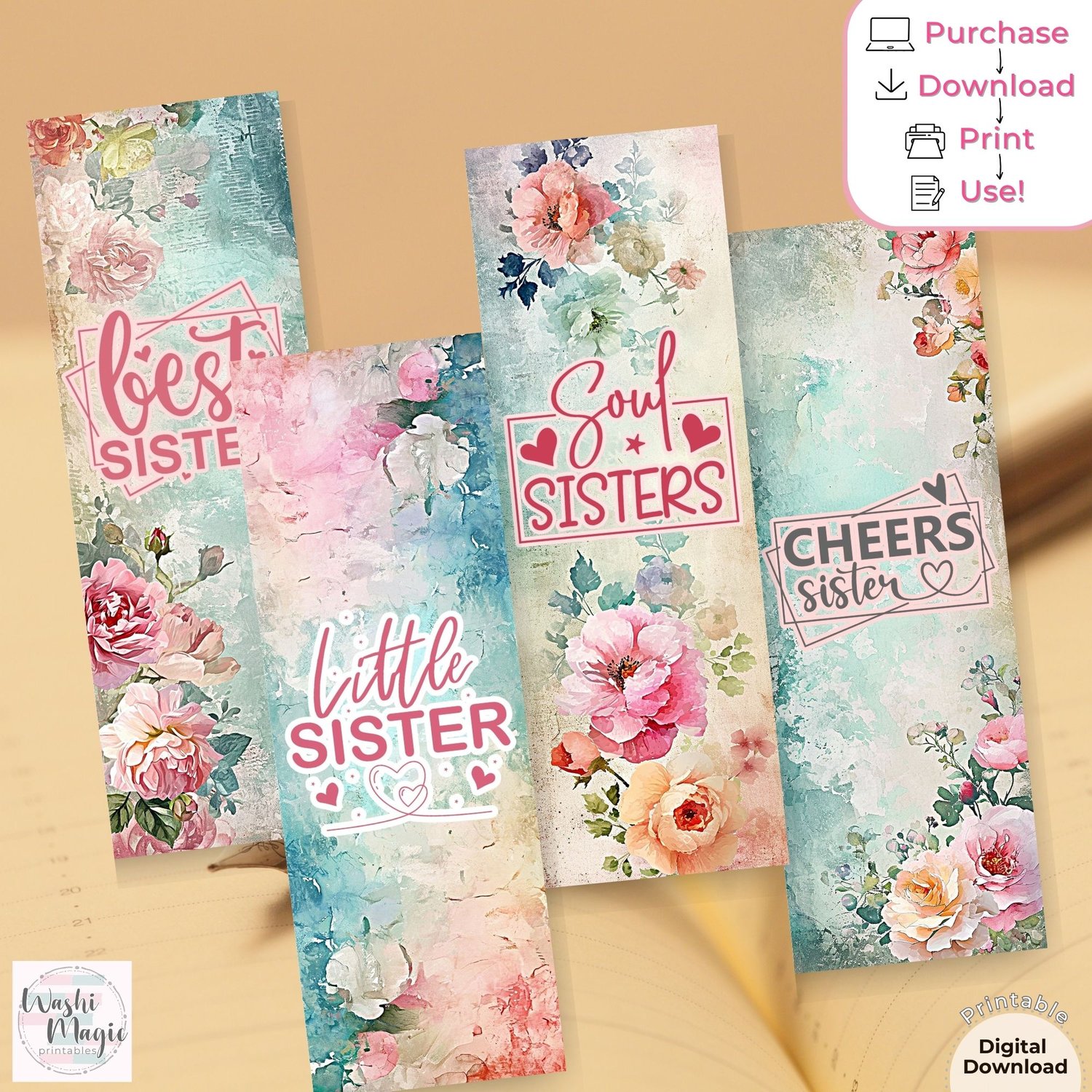 Each bookmark features intricate floral patterns, making reading even more special. Ideal for book lovers, this set is a thoughtful way to show appreciation for the sisters in your life. Download, print, and gift the essence of sisterly love today!