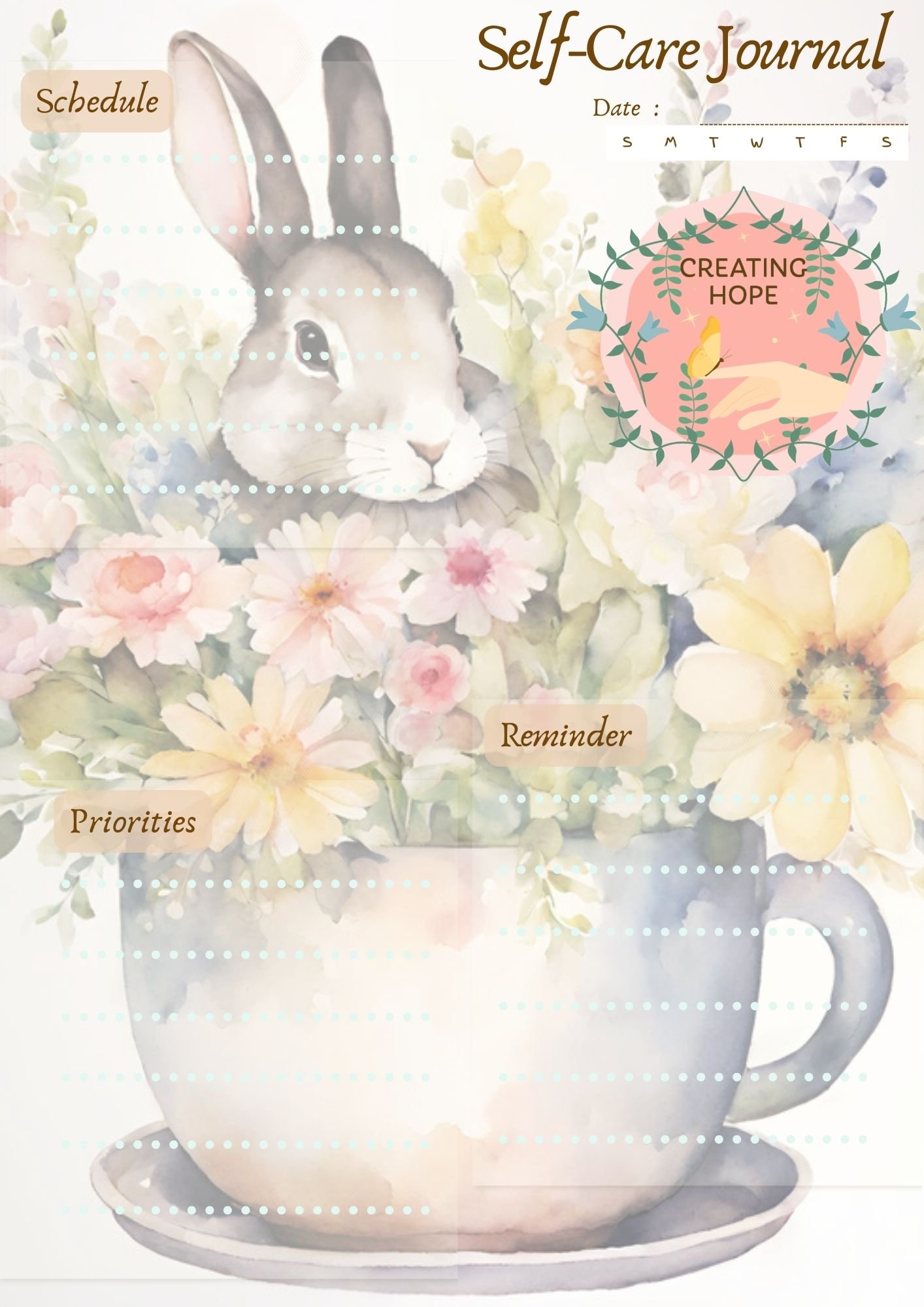 Self-Care Journal – Keep a journal to upboost your mental health, do print or duplicate the page for daily, bi-weekly, or monthly