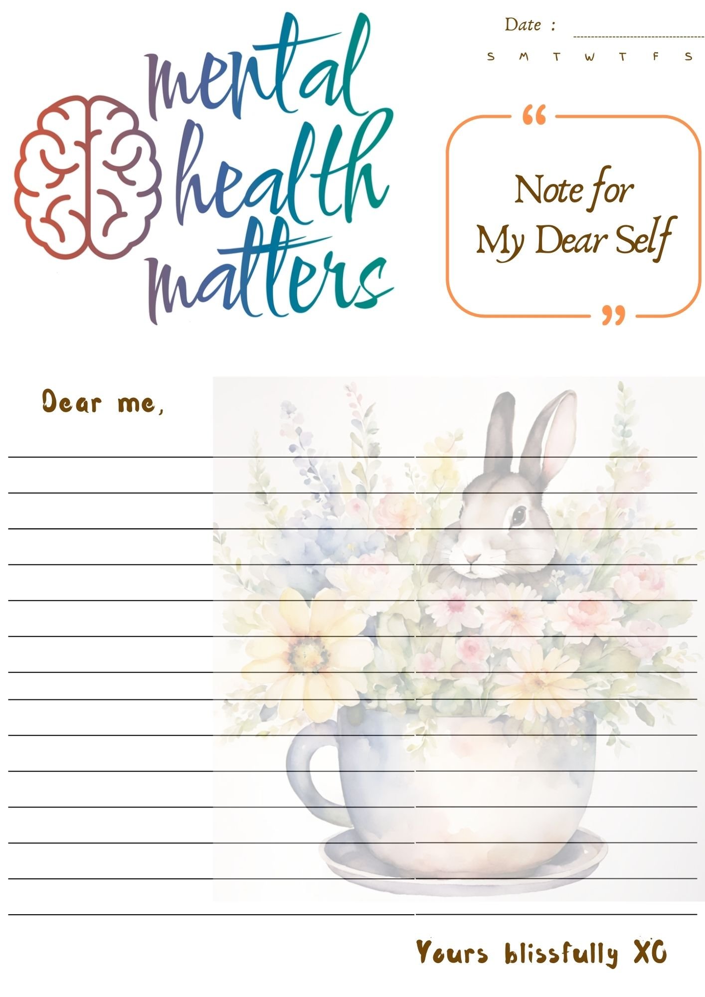 Letter to Self – A page to wrote a letter to your own self, so feel free to pour your heart out as no judgement here. Print or duplicate the page for daily, bi-weekly, or monthly