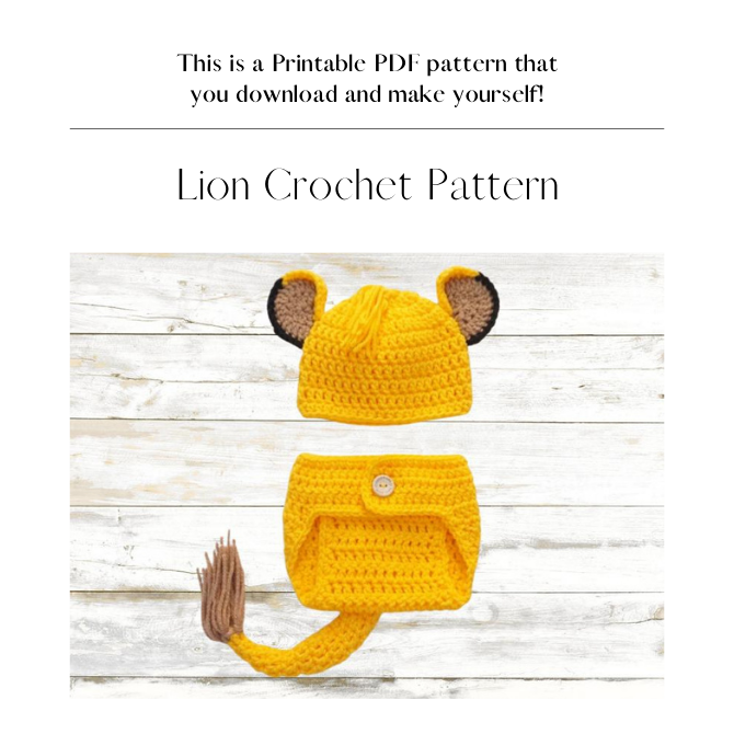 Baby Lion Outfit Pattern | Crochet Hat and Diaper Cover
