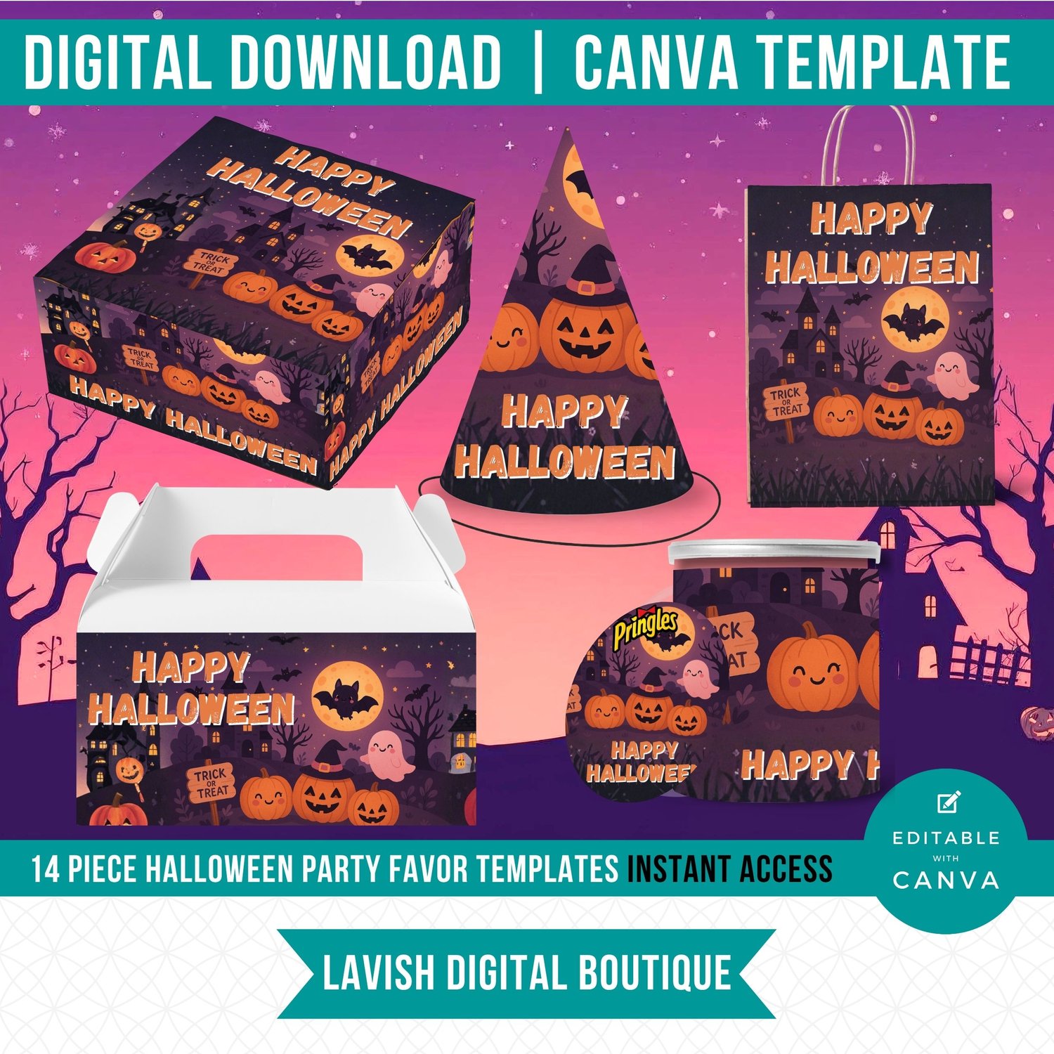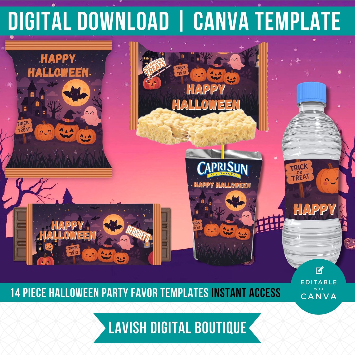 Halloween Favor Bundle Templates, Halloween Party Favor, Treat Bundle