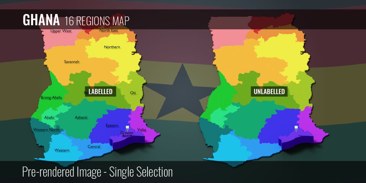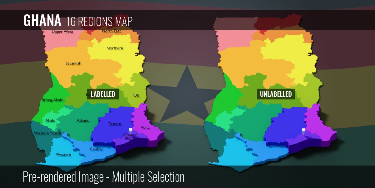 Ghana - 16 Regions Map (3D + Pre-rendered Images)