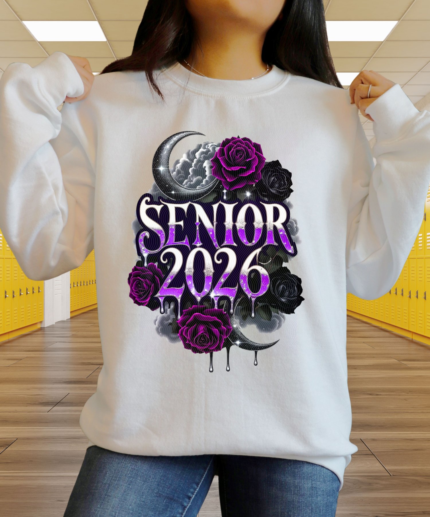Celebrate your graduating year in bold style with this Senior 2026 Gothic Moon & Roses PNG! Featuring deep purple roses, sparkling crescent moons, and shimmering dripping text, this design is perfect for seniors who love an edgy, elegant vibe. Ideal for T-shirts, hoodies, mugs, posters, and more—this high-quality PNG with a transparent background is ready to make your graduation year unforgettable.