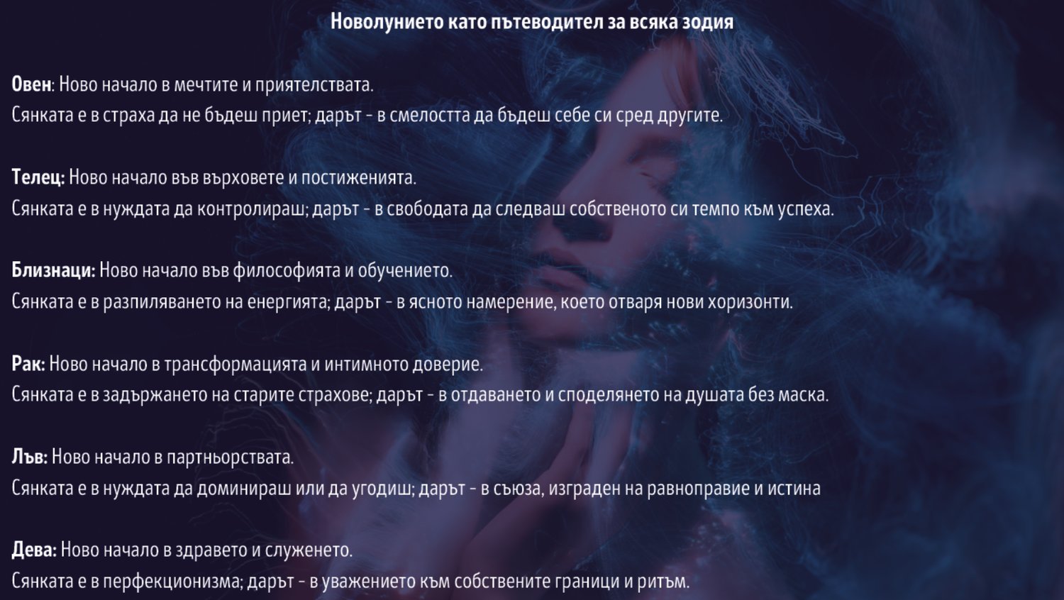 За всеки, който иска да се свърже със своята вътрешна сила, да разпознае личната си свобода и да стартира нови намерения под влиянието на лунните и слънчеви цикли.