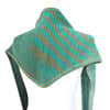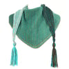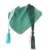Easy garter stitch stripes are framed with alternating lines of slipped stitches, The shawl is worked sideways from one tip to the opposite tip, making it possible to use up all of one’s yarn. Only one color is used at a time. Optional tassels add a bit of swingy fun at each end.