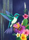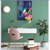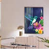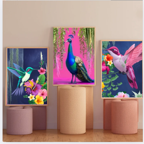 Vibrant Tropical Maximalist Bird Print Set - Dark Blue Hummingbirds & Hot Pink Peacock Jungle Print Set | Exotic Bird Print Set of 3